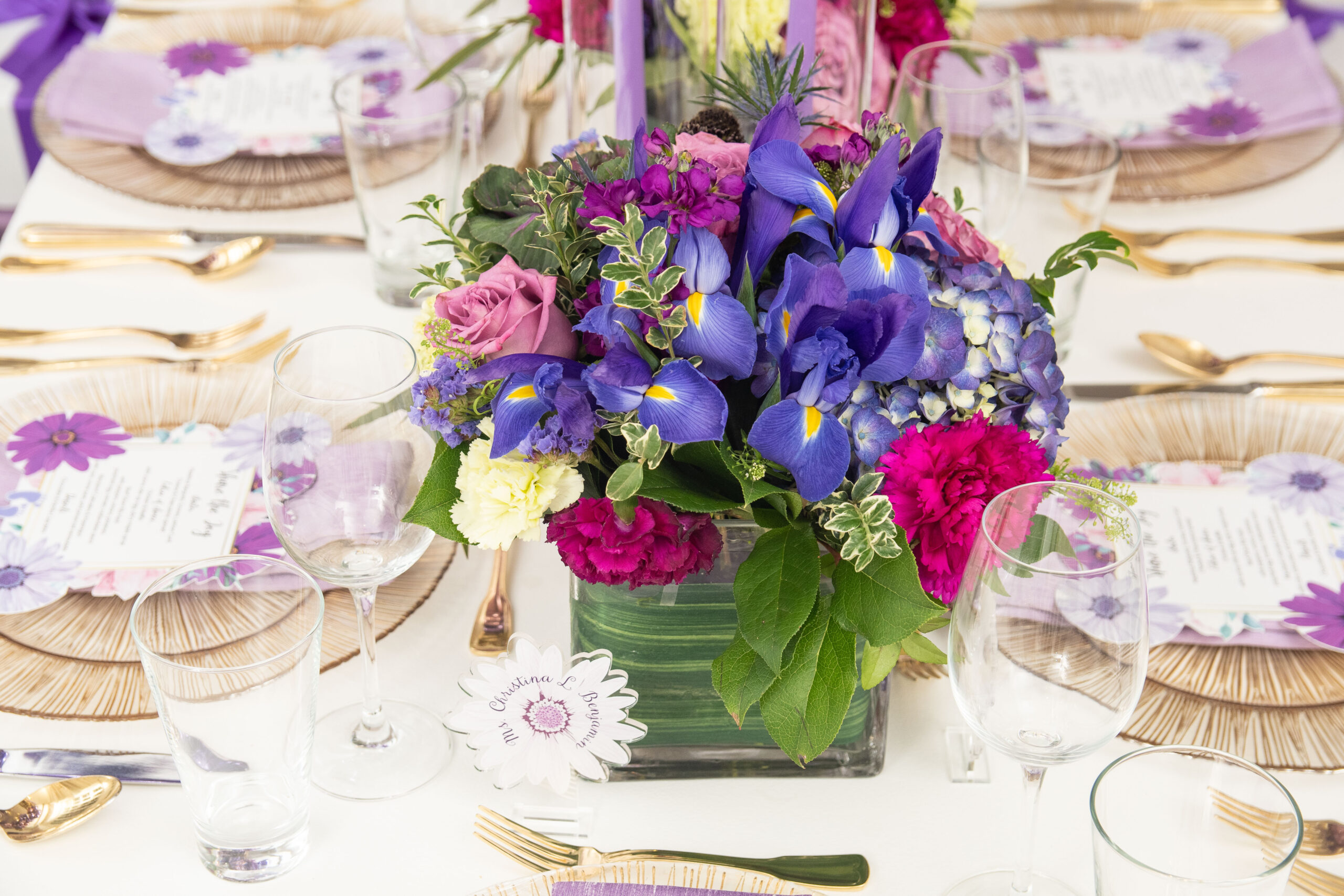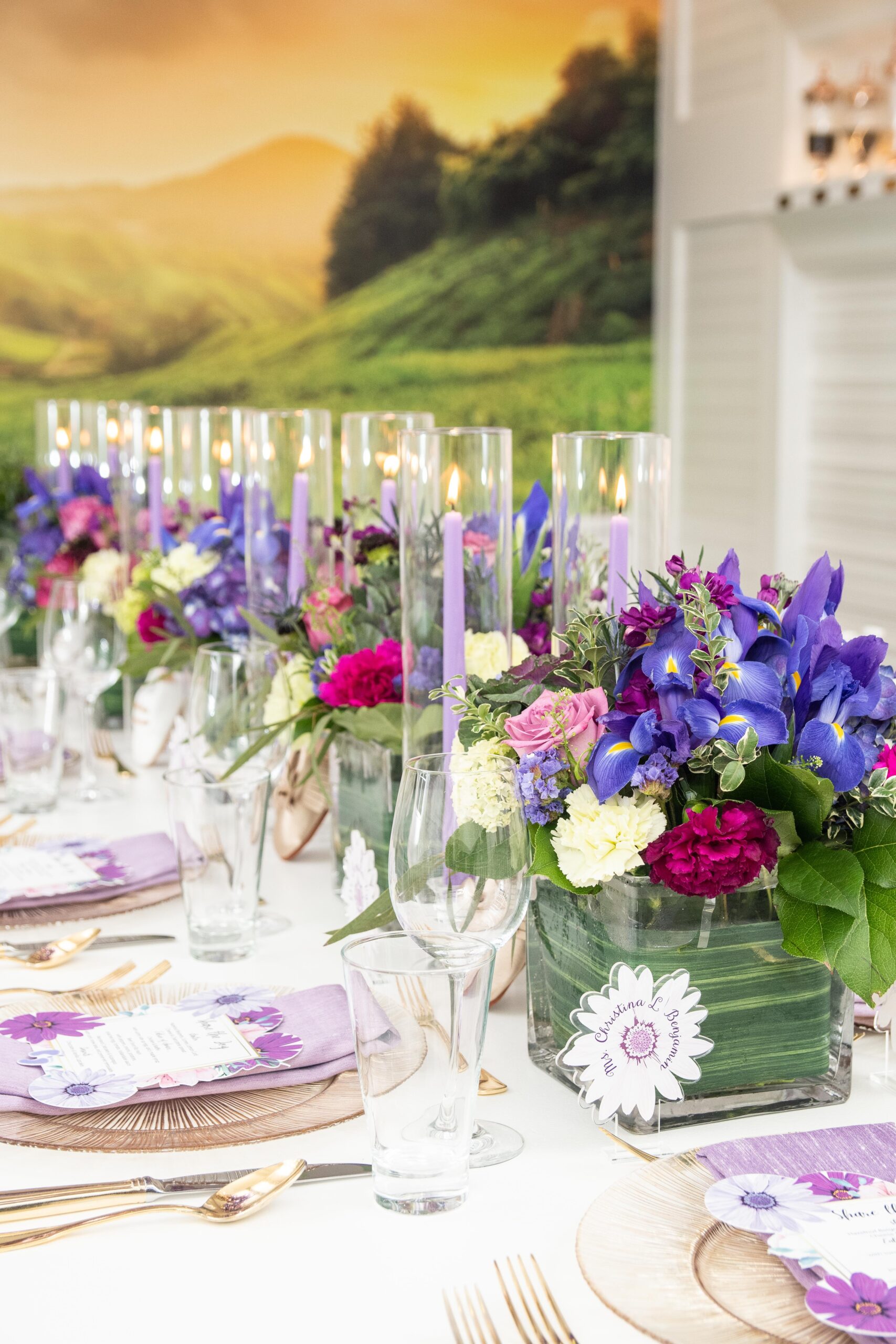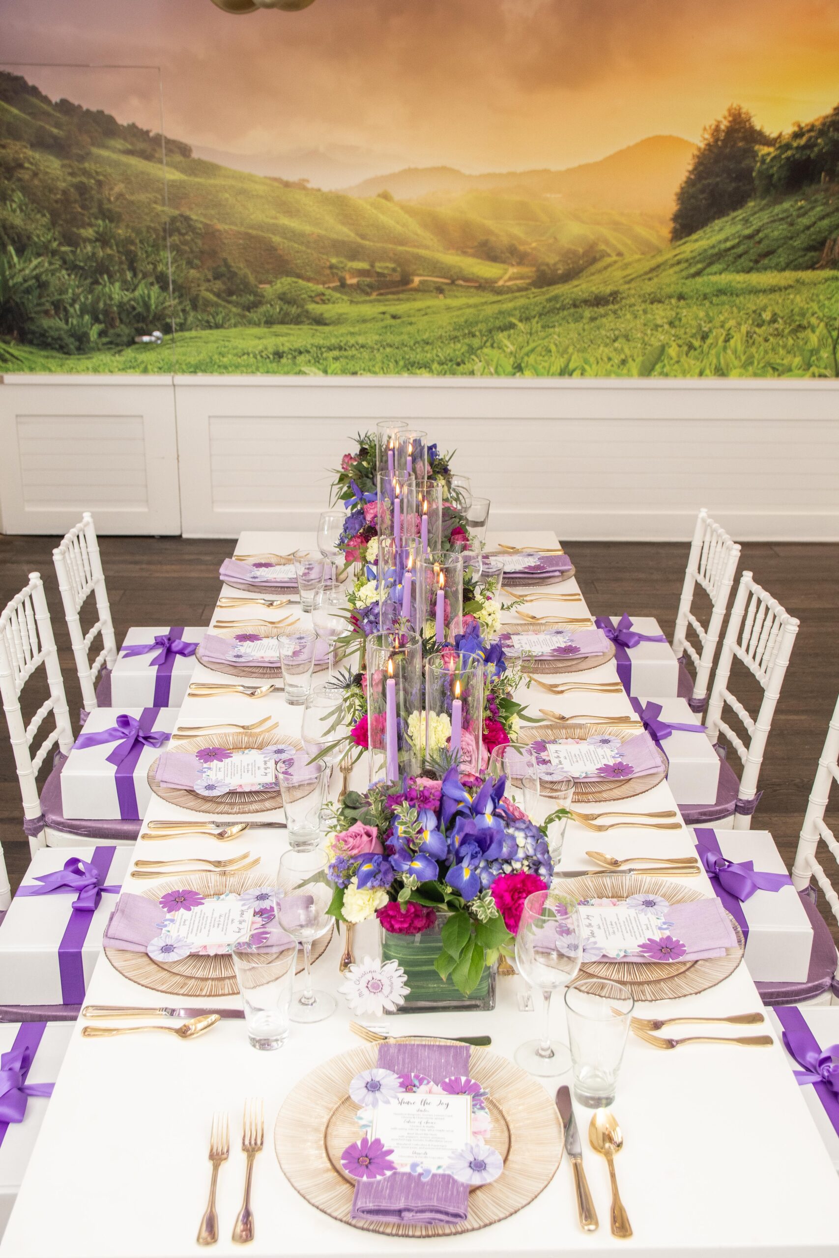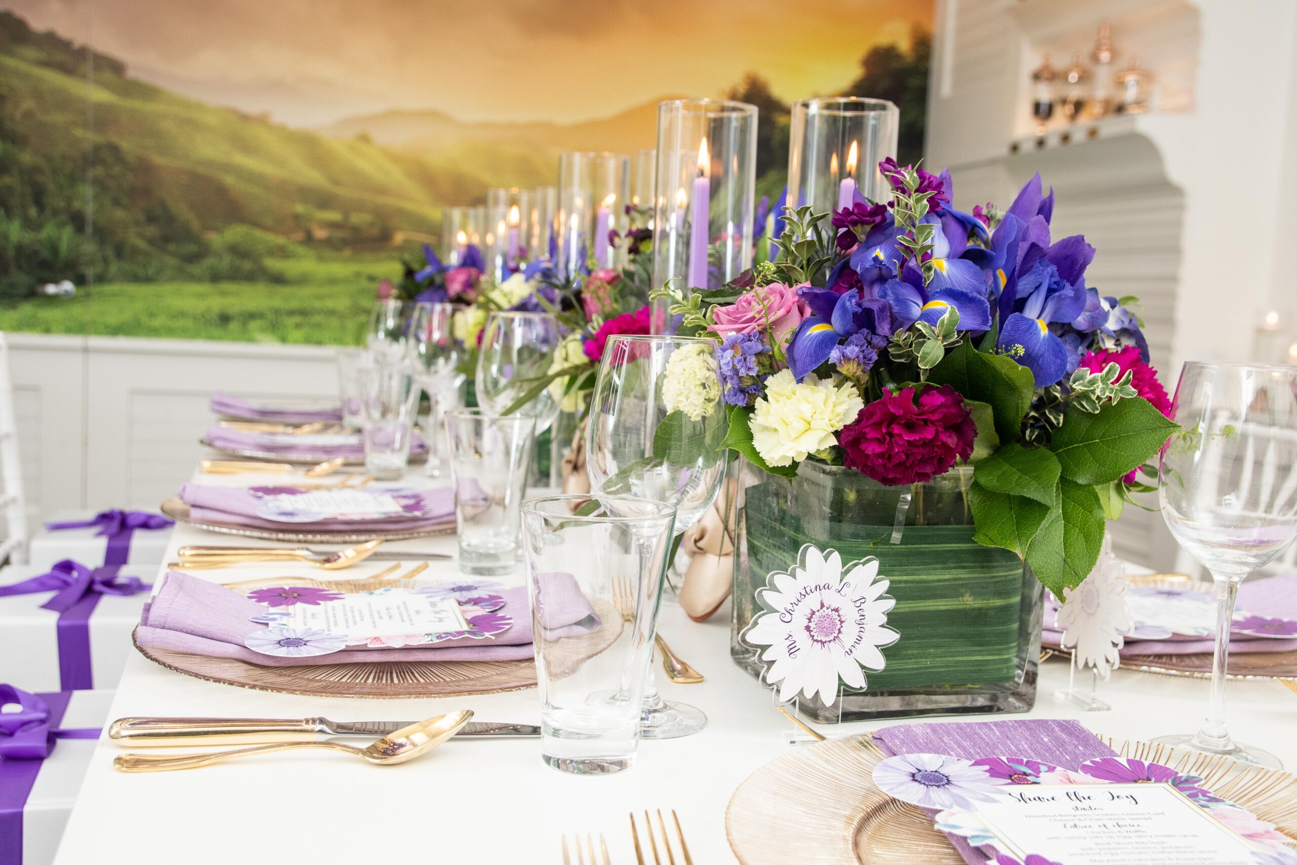 Within two-weeks I designed this elegant party from creating the design blue-print to curating heartfelt gift boxes that were shipped to guests who were attending the celebration virtually and those gathering in-person, to creating the themed-logo and designing the menu and escort cards, to selecting the brunch menu, to the technical setup for the virtual attendees, and more! Christina informed me that she absolutely loved floral gardens and the color purple. I had to balance birthday + baby shower + timeless, per the request of the the client. Every time, I met Christina she wore some shade of purple so I knew that was going to be the color for her party. For Christina, working with me was the ultimate experience that solved her problem; to have a celebration where all she had to do was put her trust in someone that would execute all angles and that is what she received.