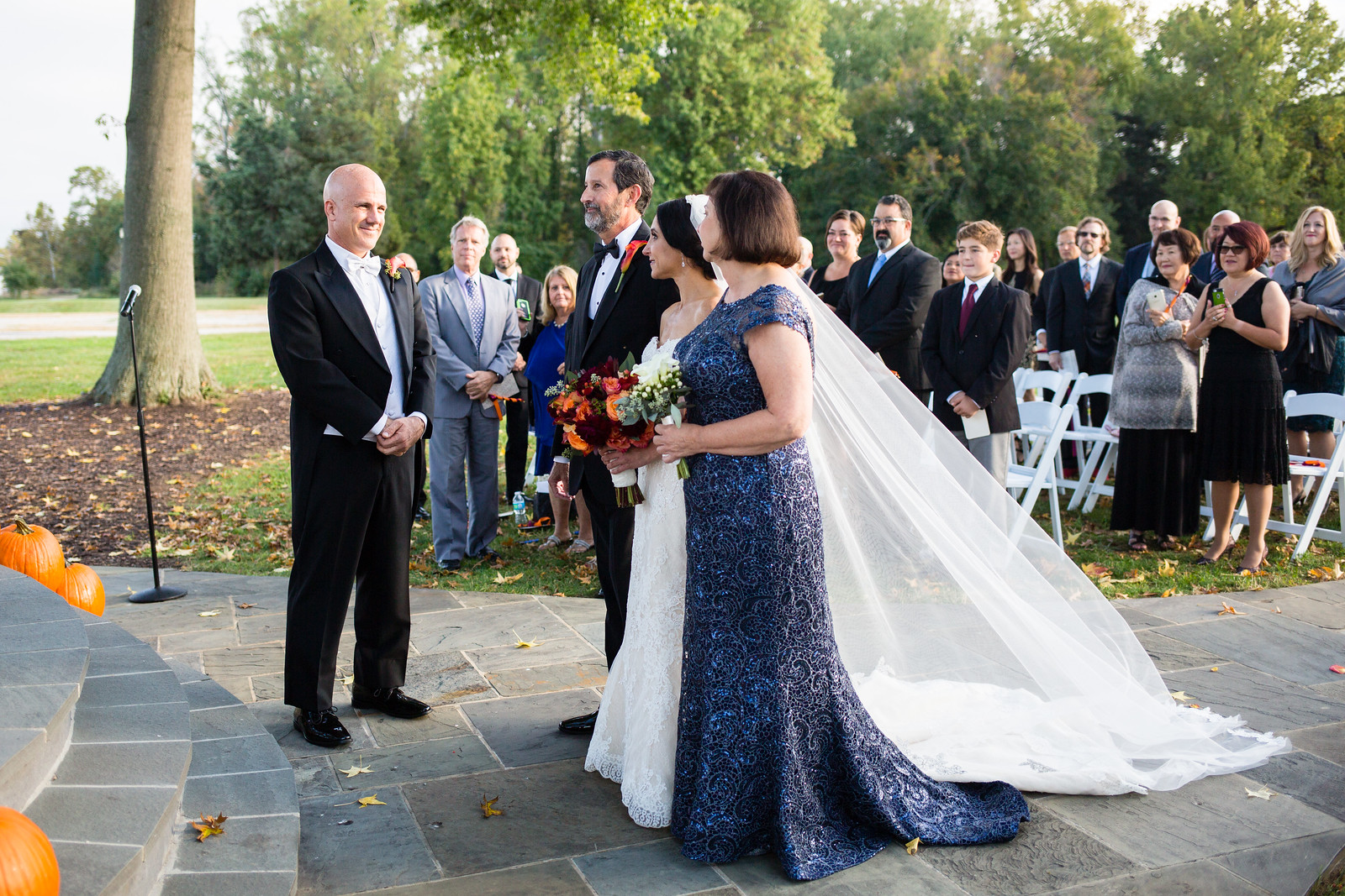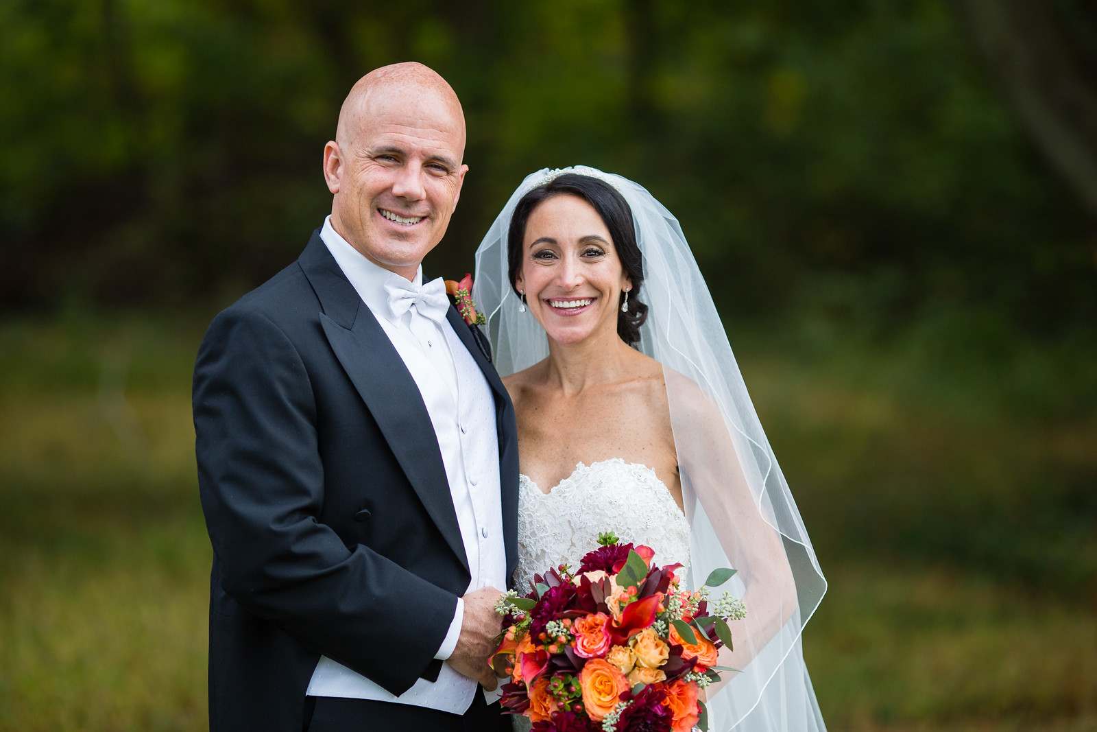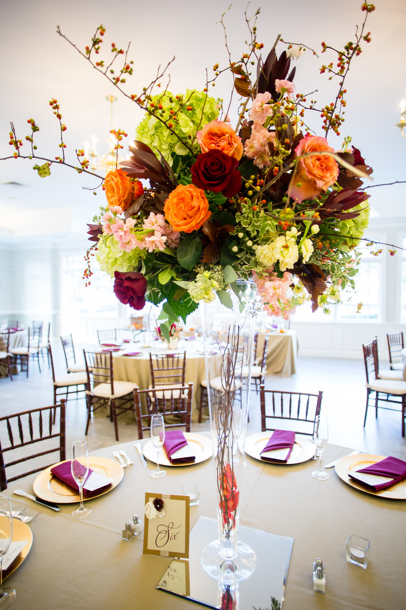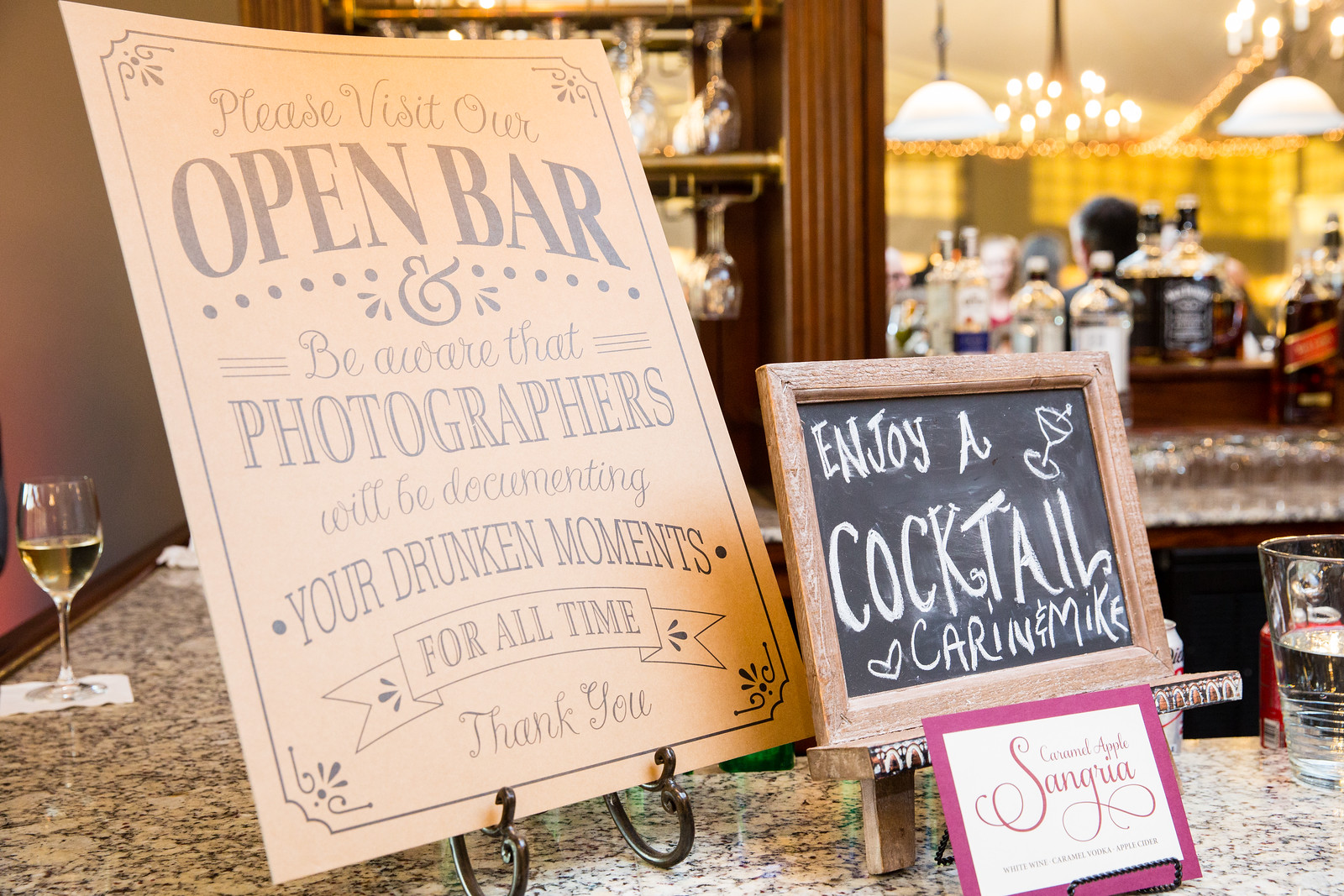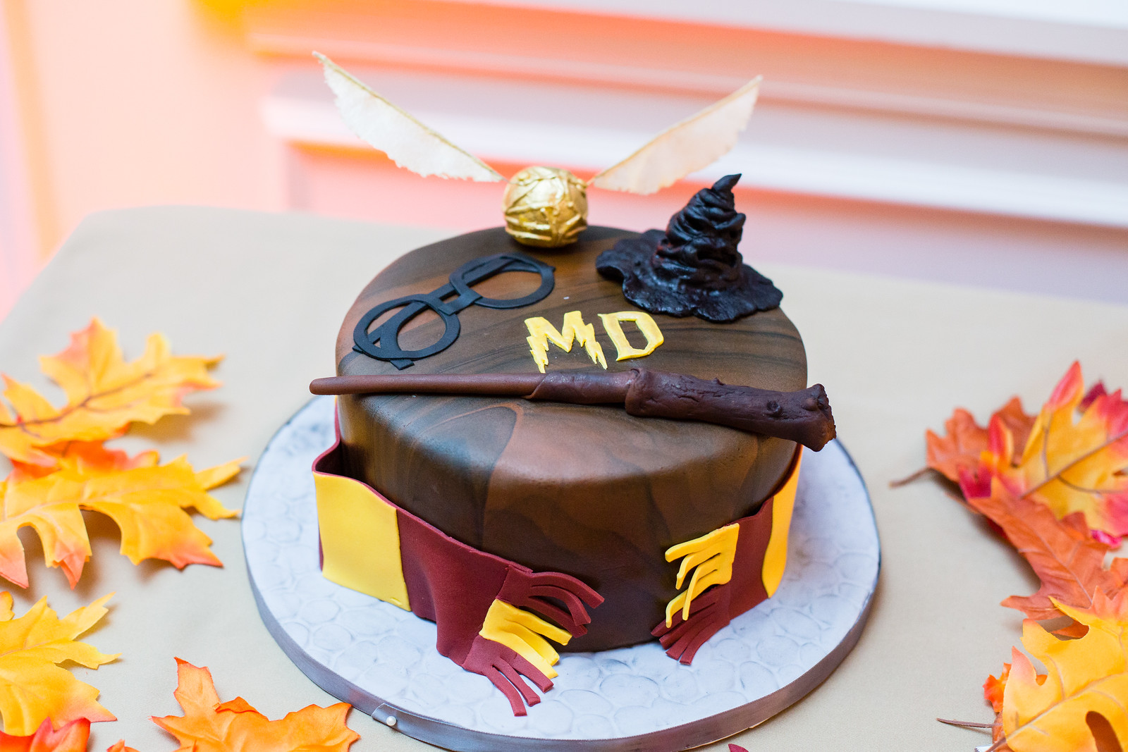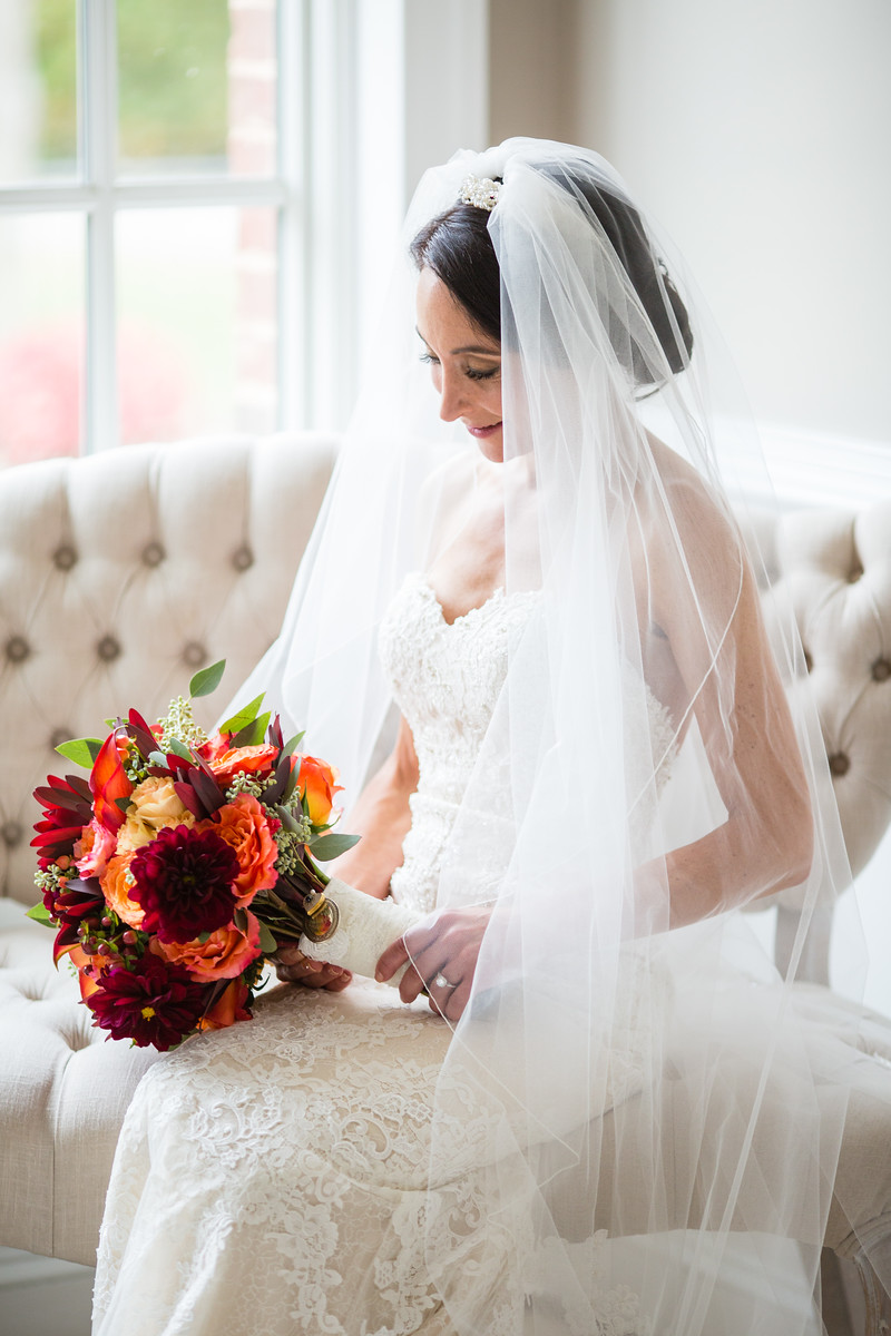 Their beautiful fall wedding was not only enriched with love but also enriched with the season with the beautiful selection of colors and décor used for their special day. Rich colors ranged from cinnamon to pumpkin spice, to burnt umber to amber, to bronze to marigold; a beautiful array of seasonal fall colors. Other intimate details on their wedding day, included the miniature pumpkin gourds with escort cards leaves on top; pumpkins were used as vases at the reception hosting a bounty of fall floral arrangements inside; pumpkins lining the steps at the altar; and a Harry Potter inspired groom’s cake. Details, details, details.