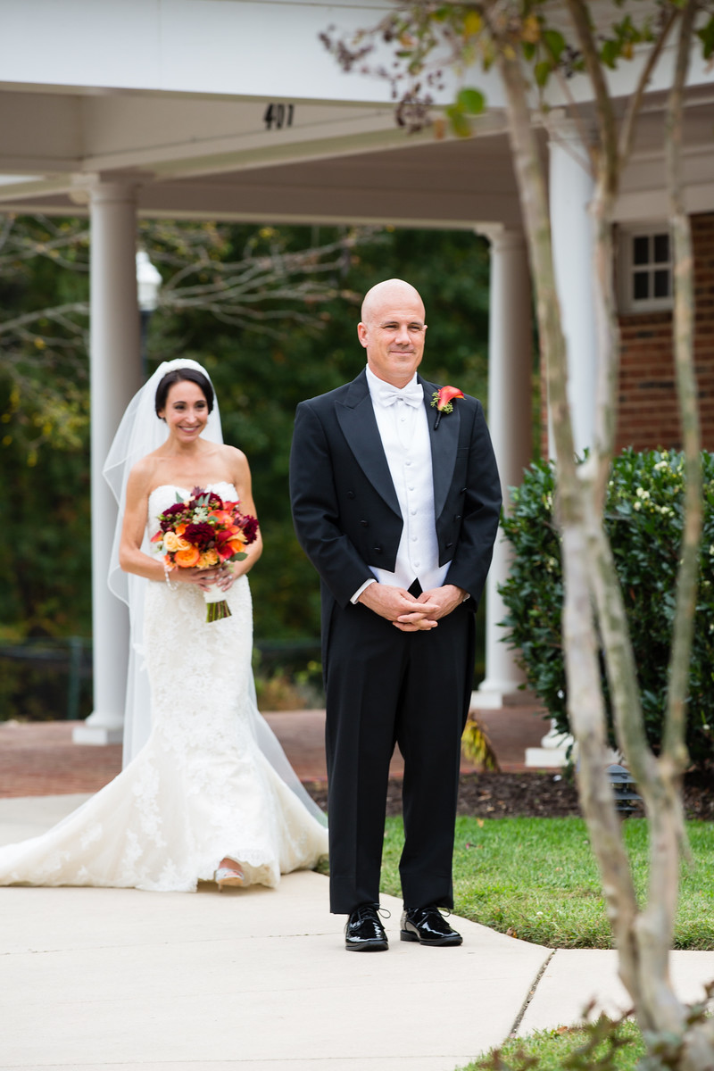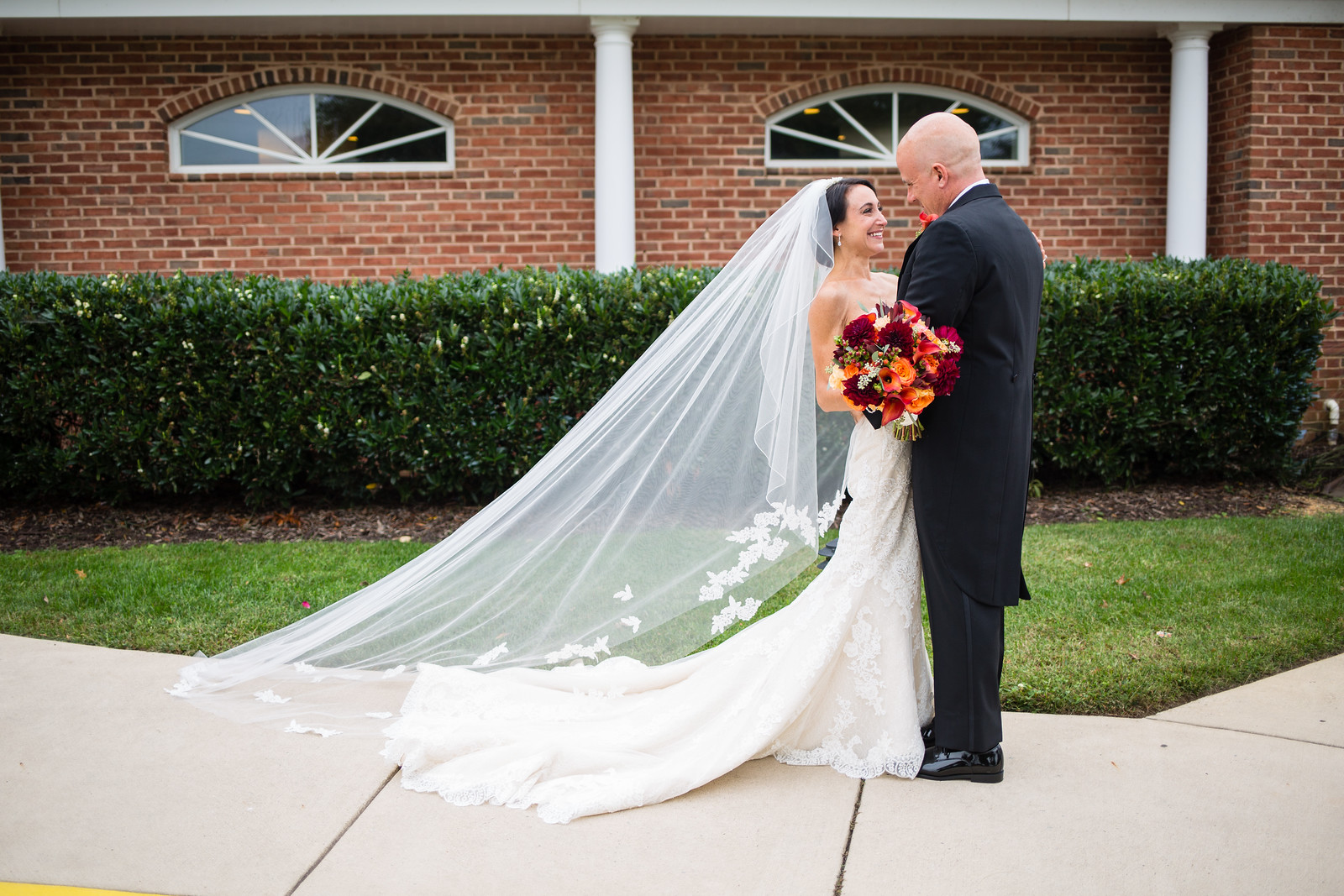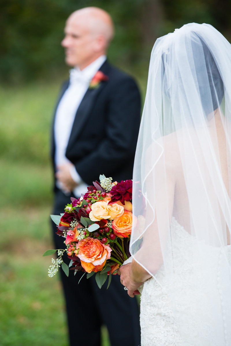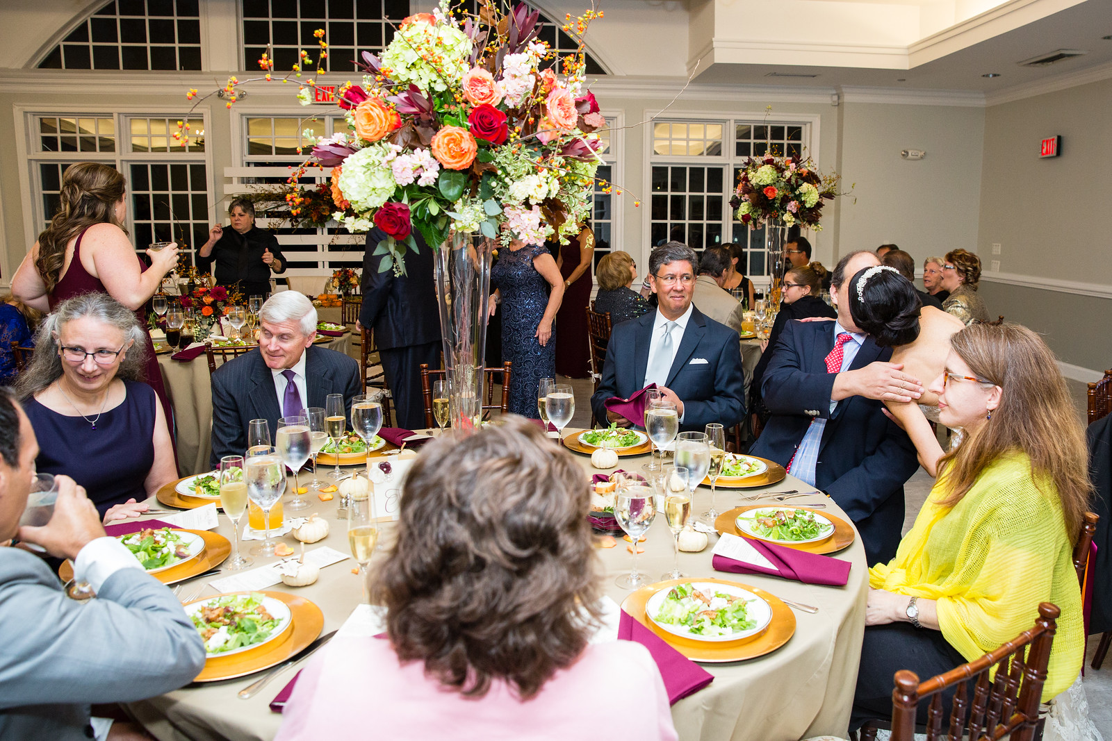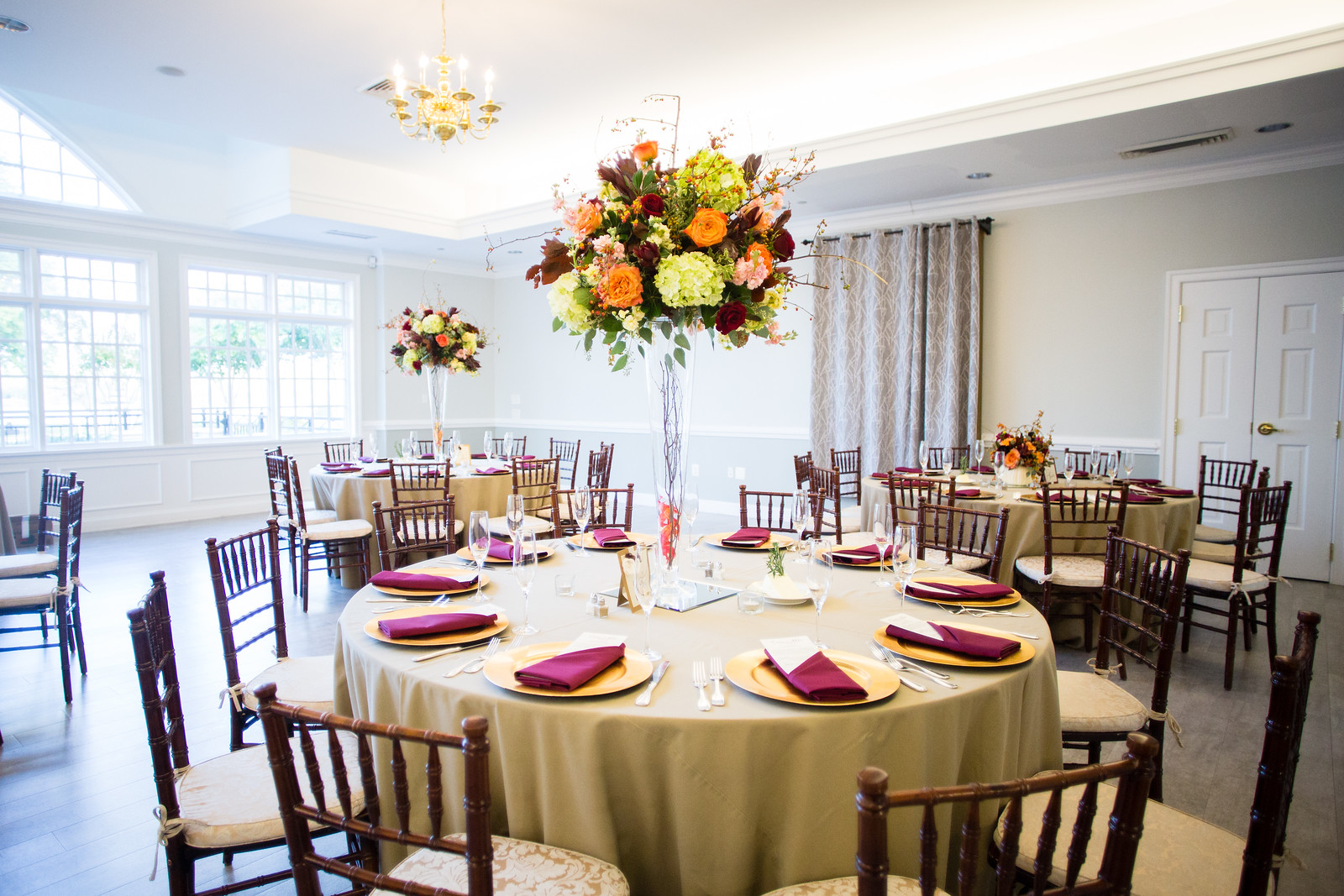Their beautiful fall wedding was not only enriched with love but also enriched with the season with the beautiful selection of colors and décor used for their special day. Rich colors ranged from cinnamon to pumpkin spice, to burnt umber to amber, to bronze to marigold; a beautiful array of seasonal fall colors. Other intimate details on their wedding day, included the miniature pumpkin gourds with escort cards leaves on top; pumpkins were used as vases at the reception hosting a bounty of fall floral arrangements inside; pumpkins lining the steps at the altar; and a Harry Potter inspired groom’s cake. Details, details, details.
