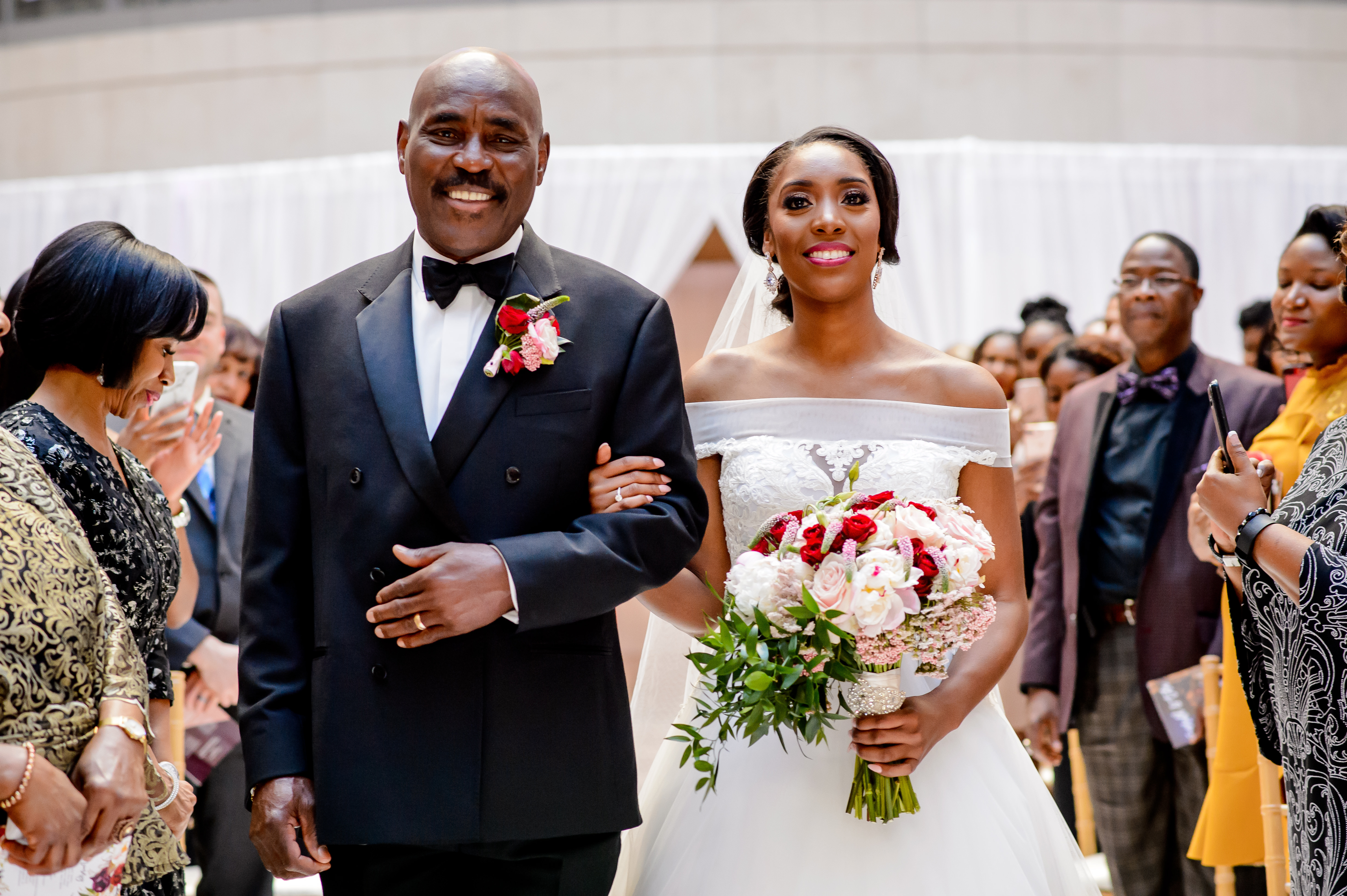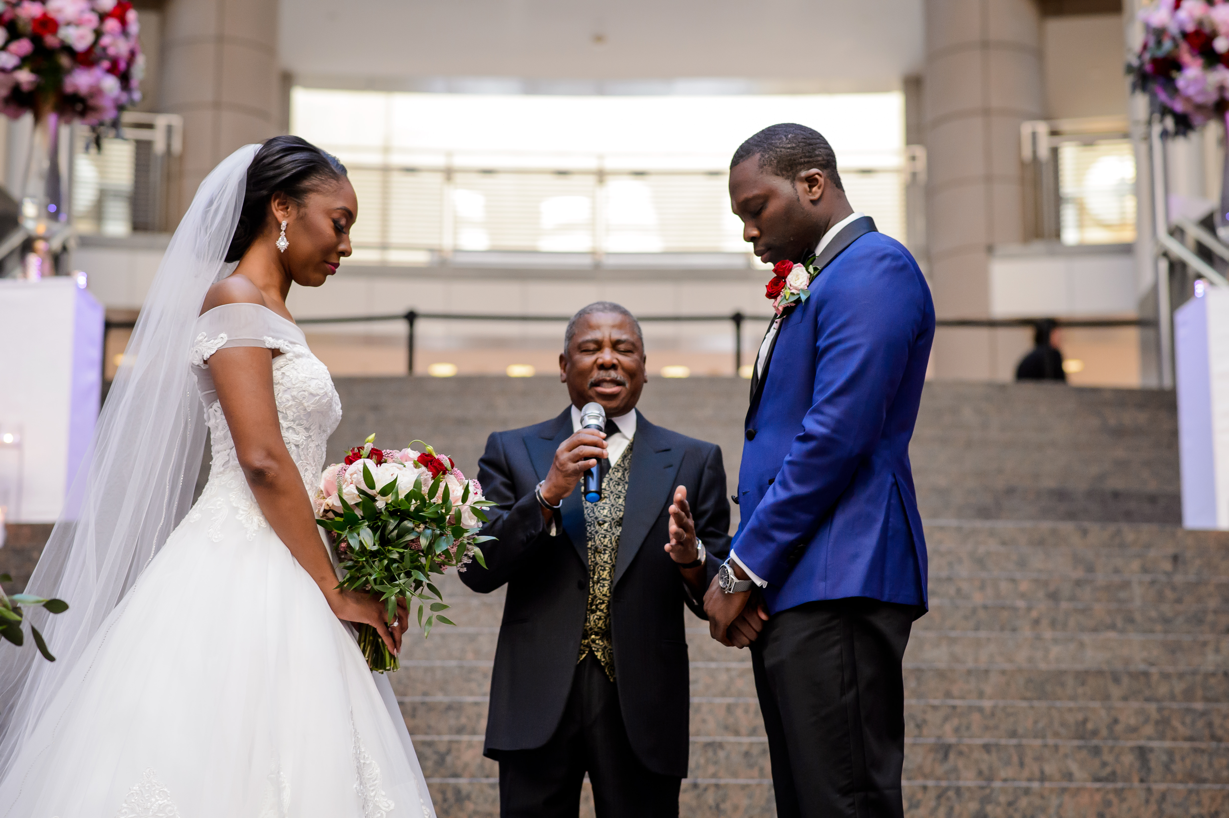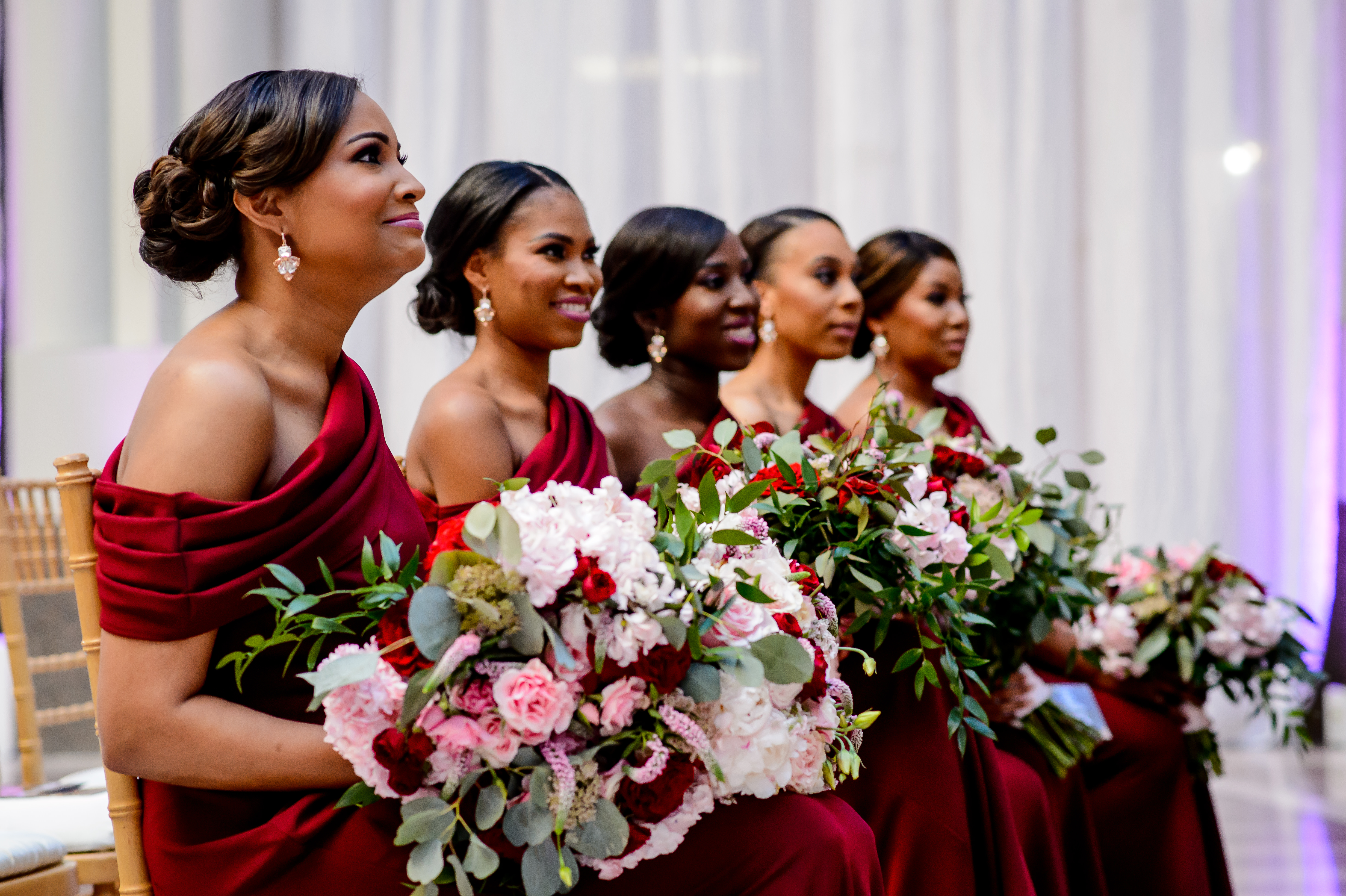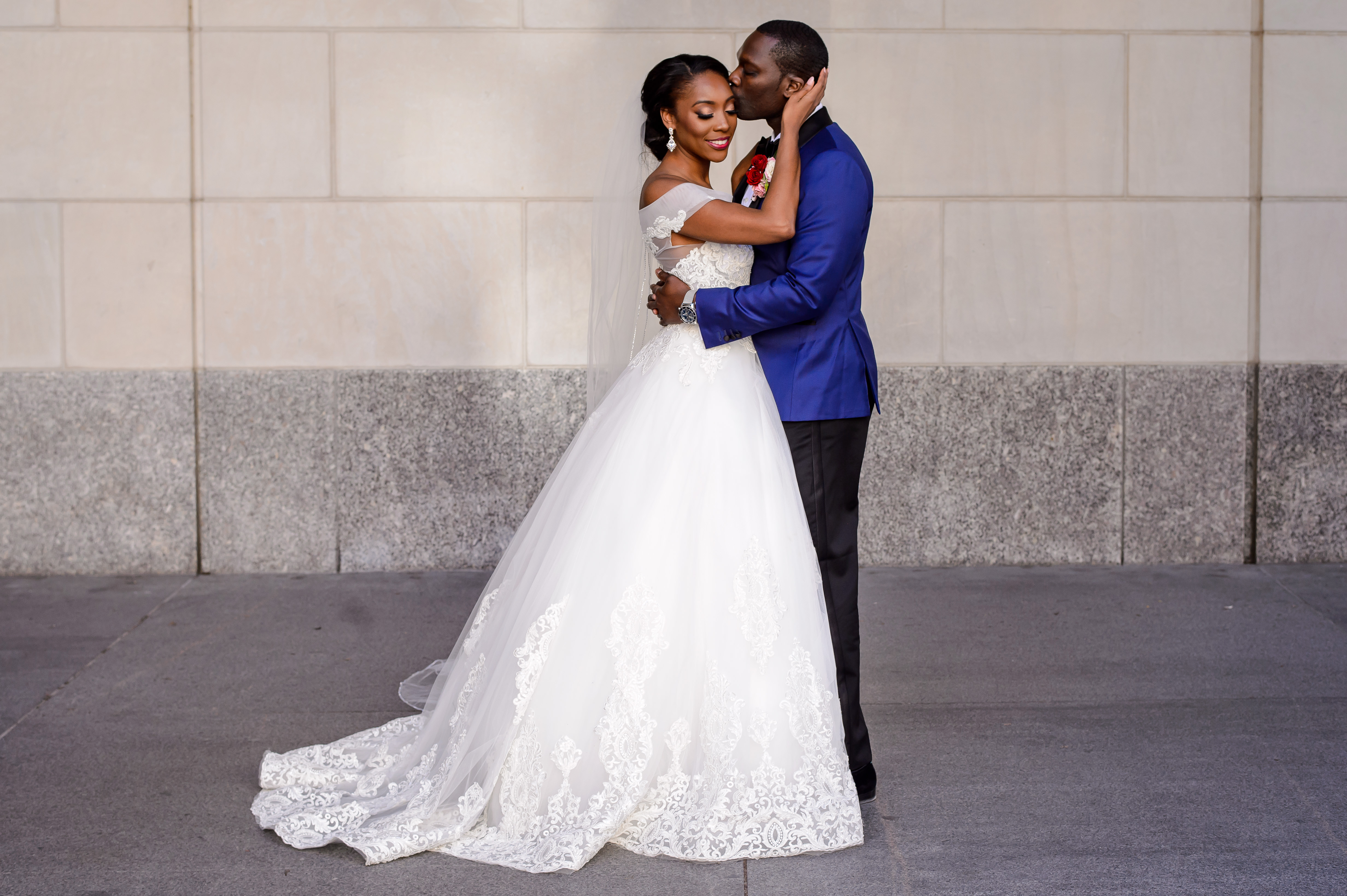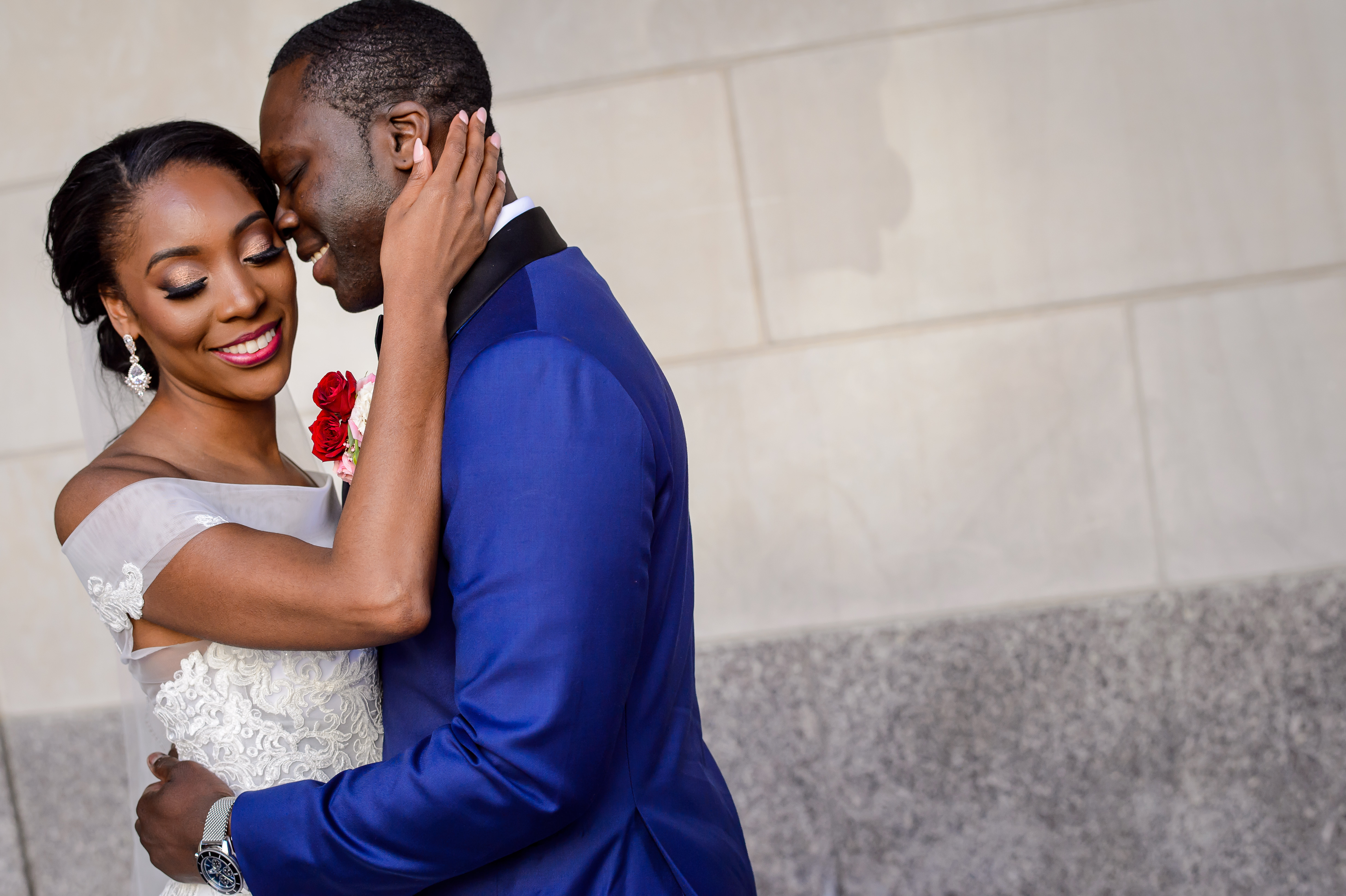 (EMERALD) The best moment of the wedding for me was our grand entrance into the reception. Our guests were expecting us to come from a different direction so to hear their reactions of cheer and surprise as we danced down 30+ stair steps onto the main dance floor was amazing! We felt like Beyonce’ & Jay-Z performing at the Grammy’s. (TOLU) The best moment of the wedding was Emerald’s dance tribute with her former Washington Redskins cheerleader teammates. Tolu met Emerald after her time as a cheerleader, so the wedding was the first time Tolu got to see her perform with pom-poms and friends.