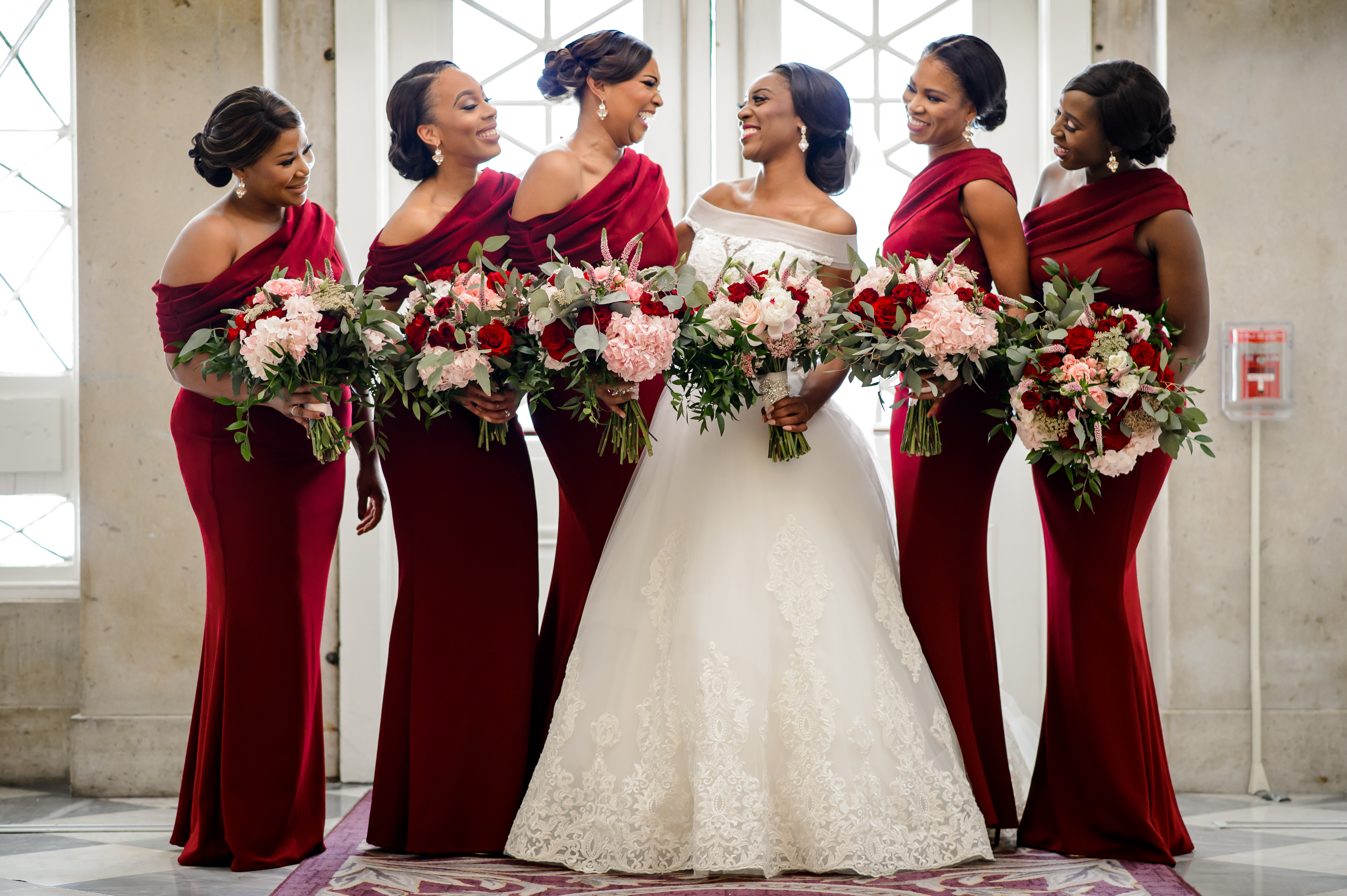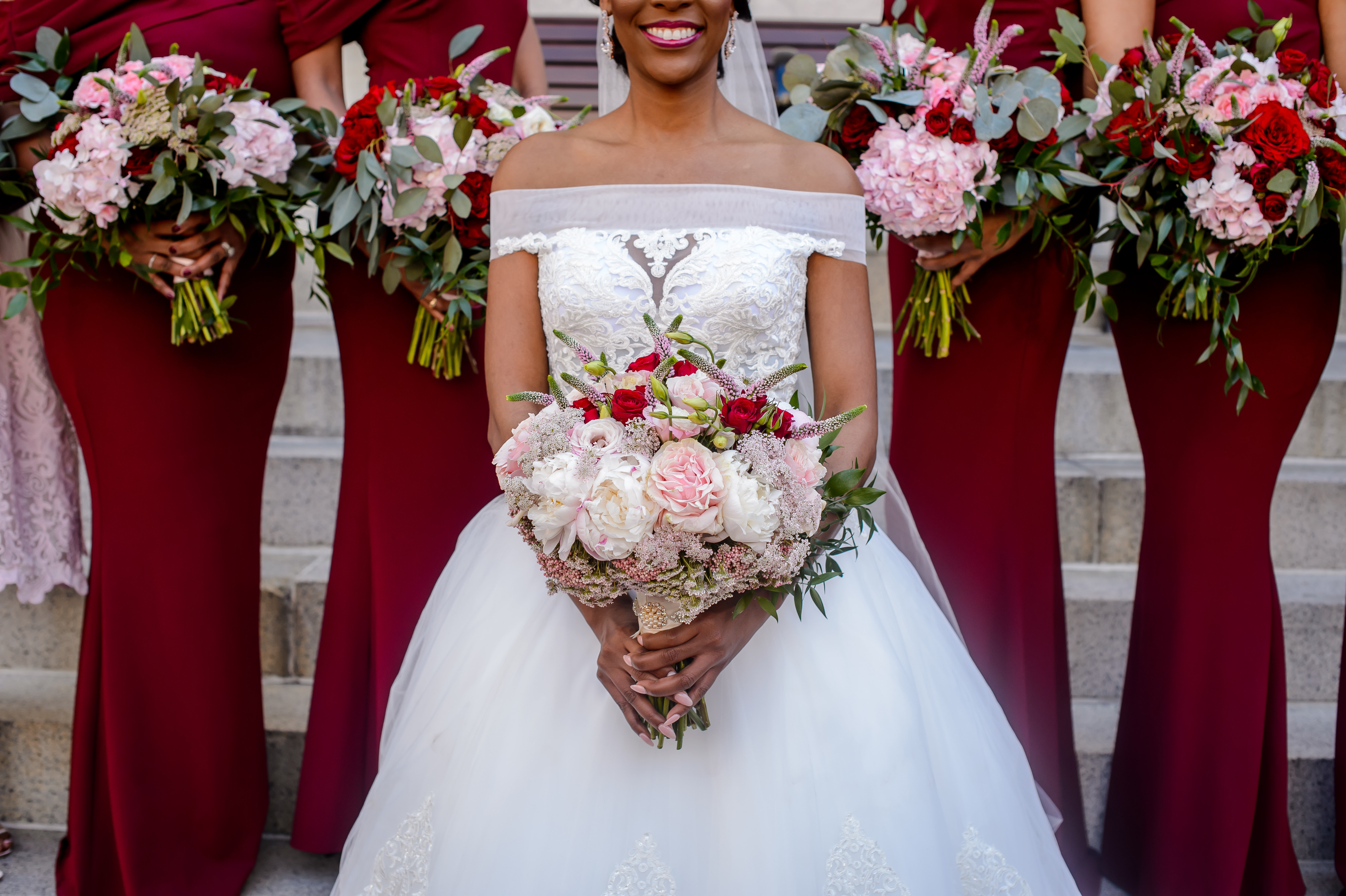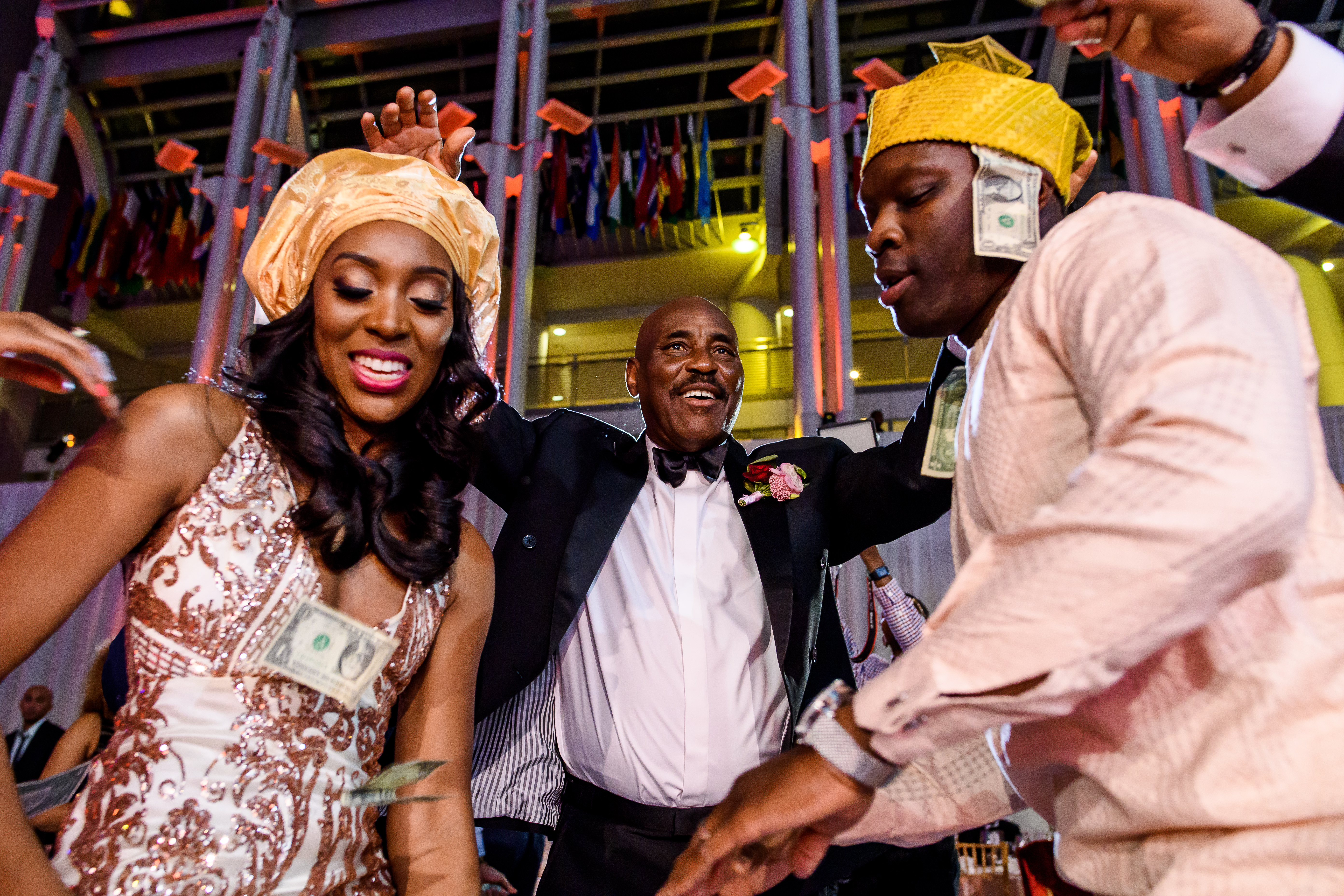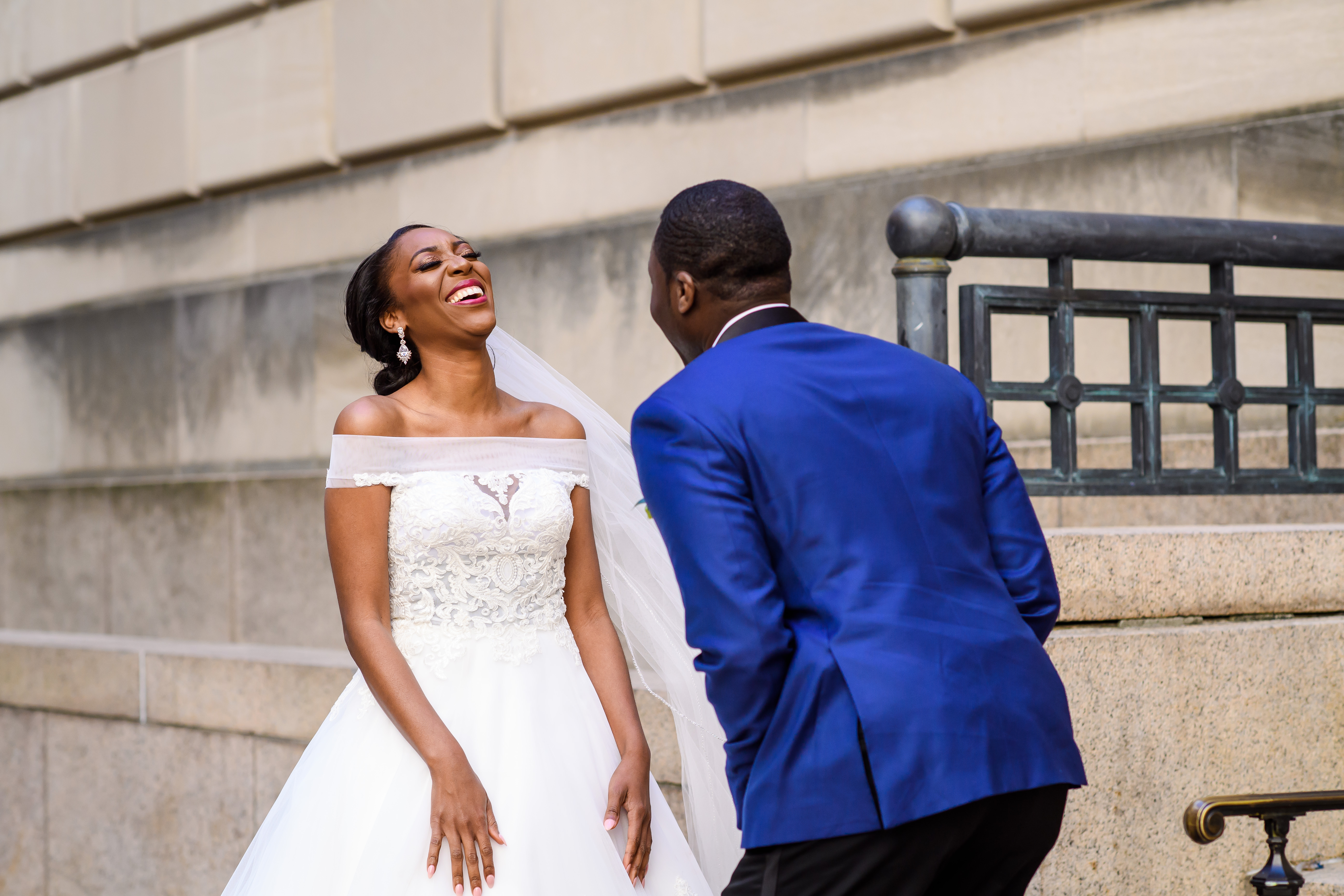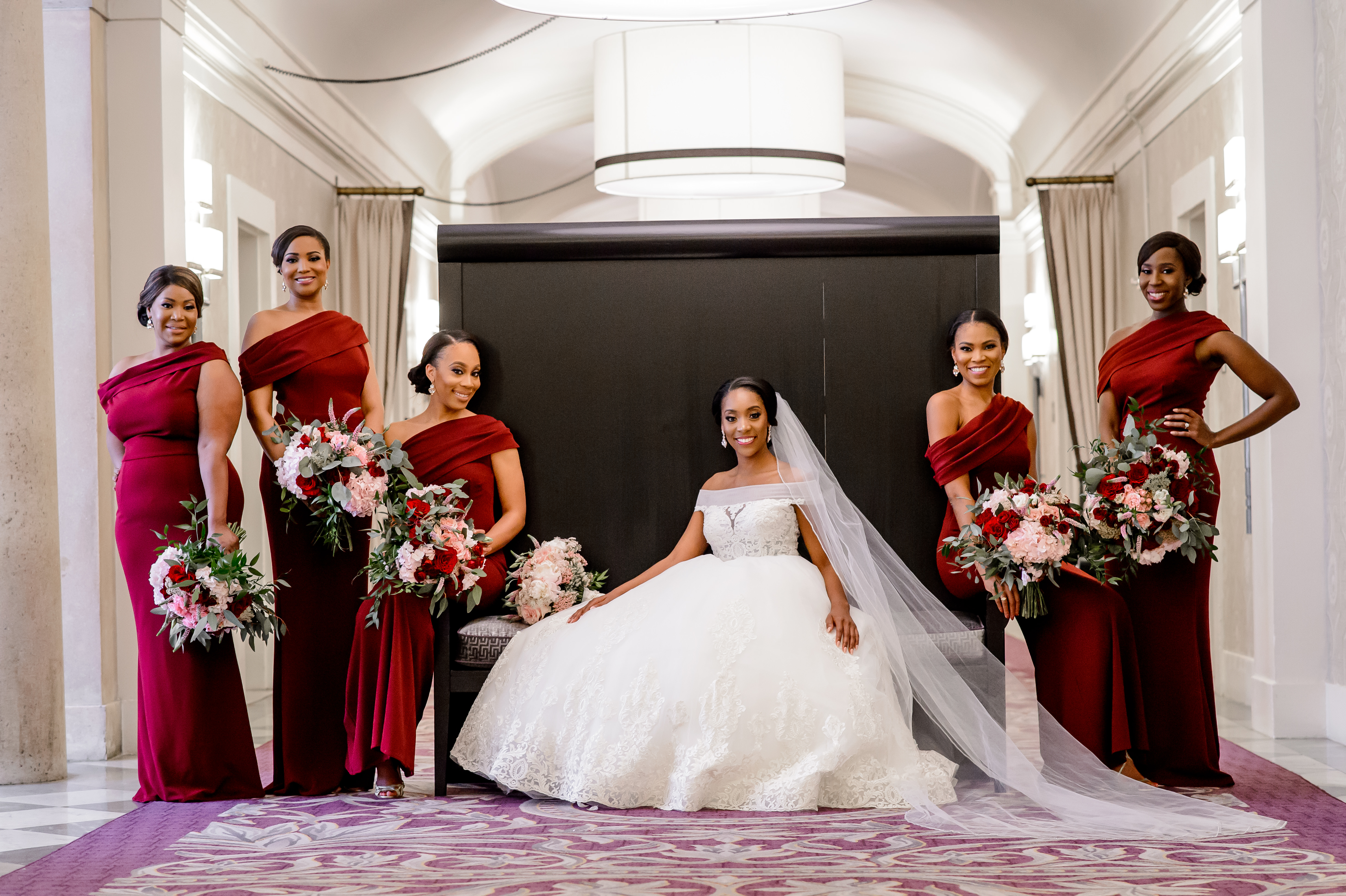 (EMERALD) The best moment of the wedding for me was our grand entrance into the reception. Our guests were expecting us to come from a different direction so to hear their reactions of cheer and surprise as we danced down 30+ stair steps onto the main dance floor was amazing! We felt like Beyonce’ & Jay-Z performing at the Grammy’s. (TOLU) The best moment of the wedding was Emerald’s dance tribute with her former Washington Redskins cheerleader teammates. Tolu met Emerald after her time as a cheerleader, so the wedding was the first time Tolu got to see her perform with pom-poms and friends.
