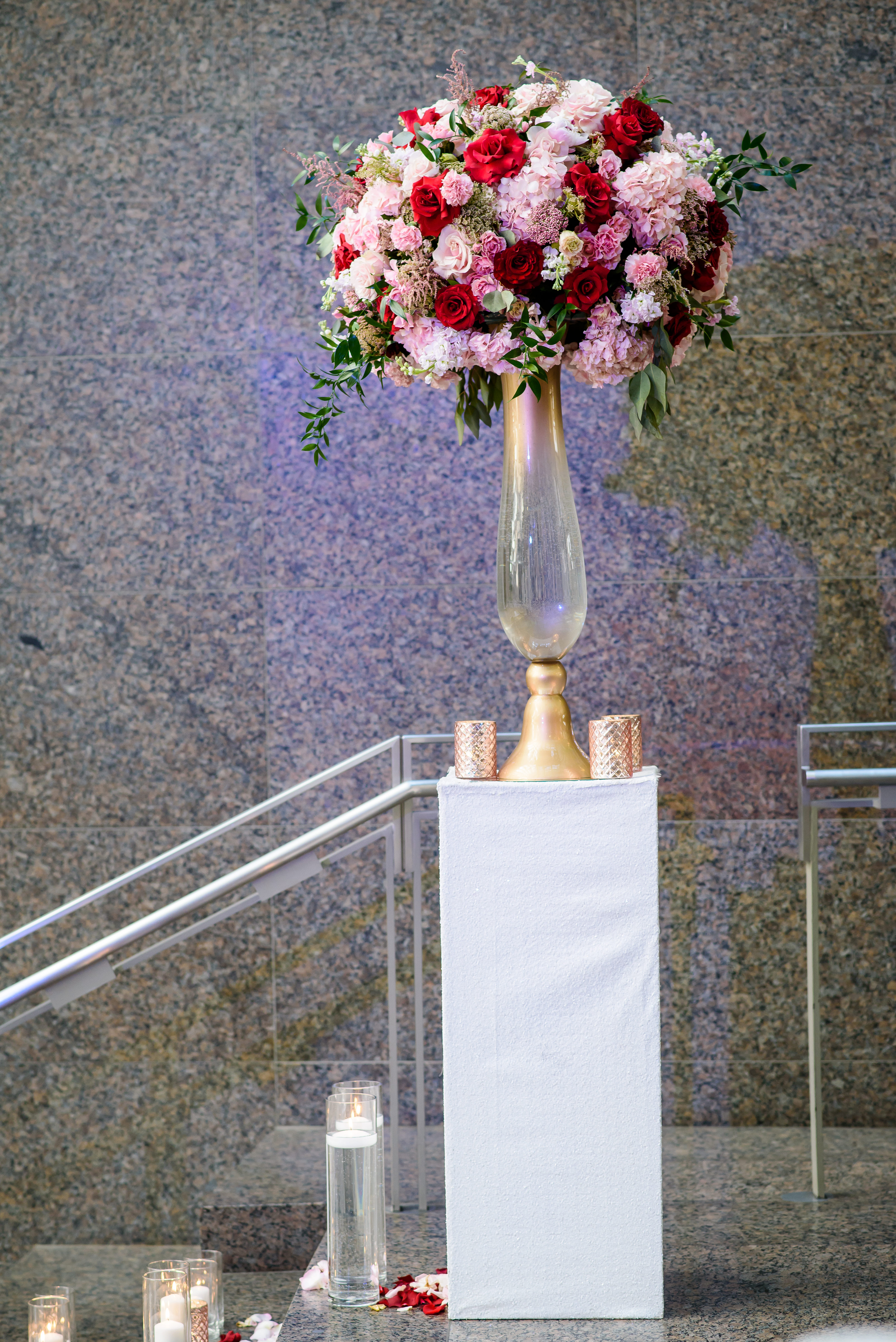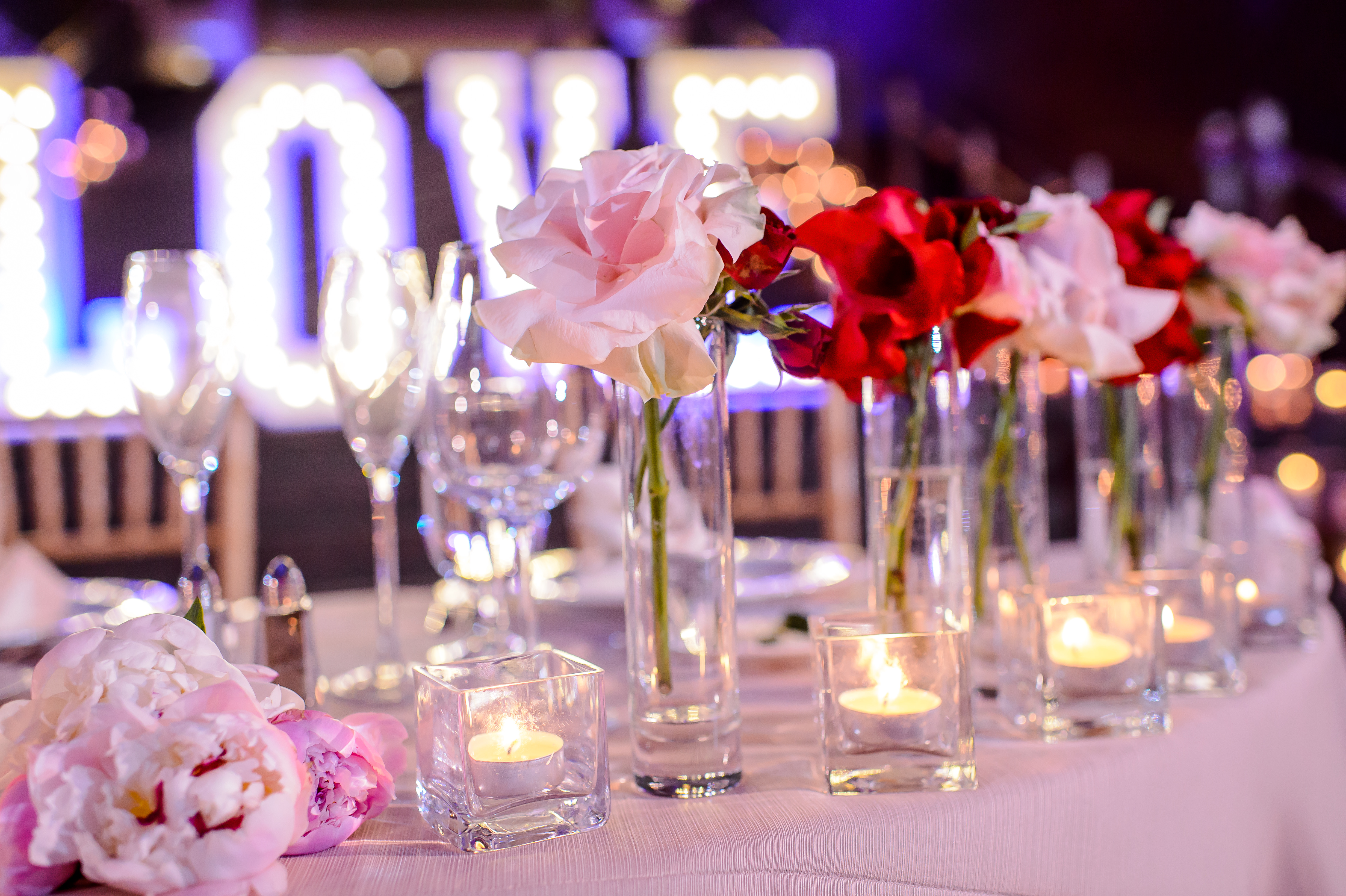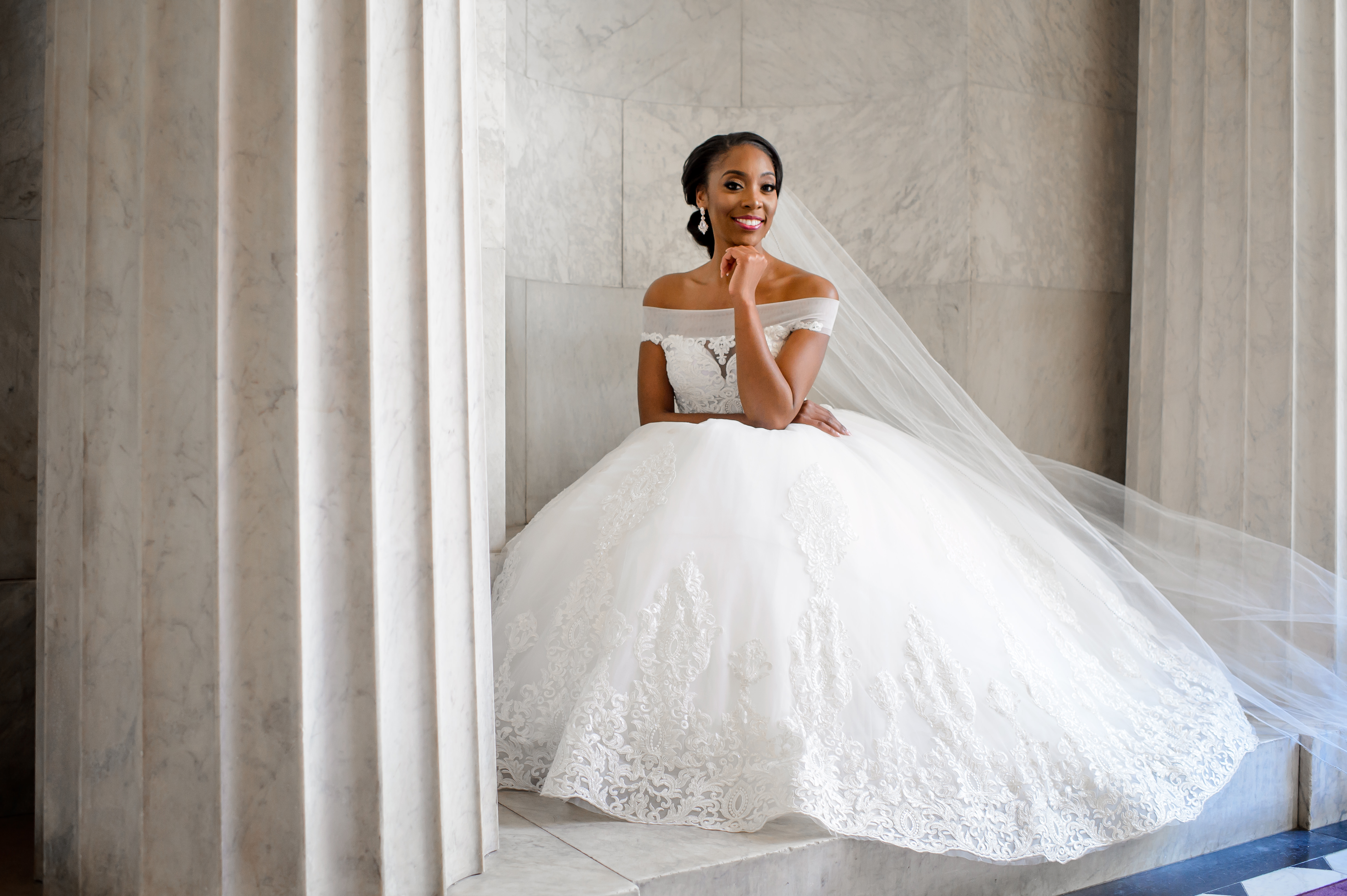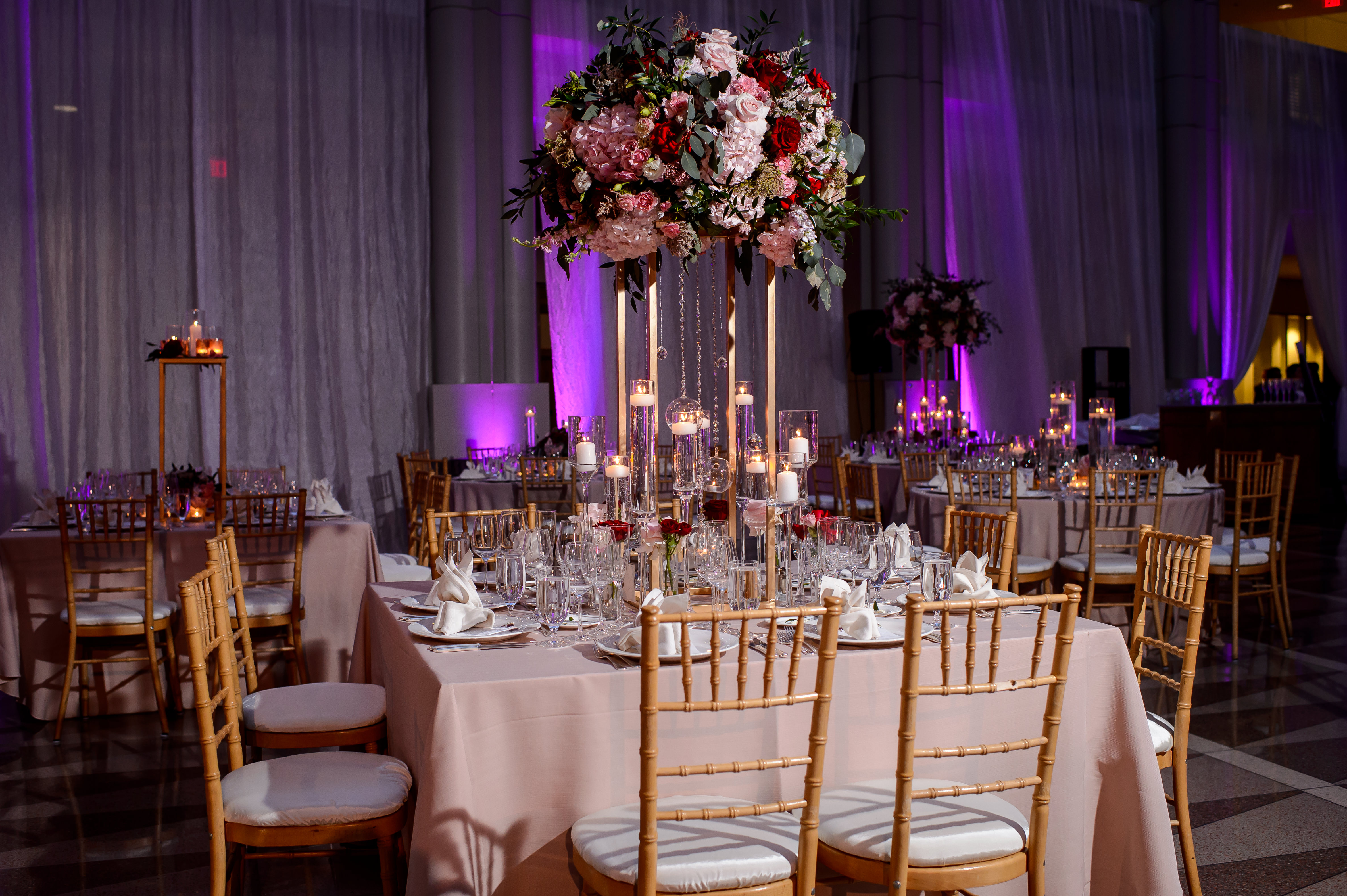Location – Ronald Reagan International Trade Center • Photography – Joshua Dwain Photography • Florals – BCG Events • Videography – The Media Experience Film House • Deejay – DJ Donx • Ceremony Musician – Chelsey Green • Stationery – Taylor & Hov • Linens – BBJ Linens • LOVE Letters – Brightly EverAfter • Draping – Fabrication Events • Lighting, Dance Floor – The Light Source Company • Officiant – Reverend Dr. Williams • Hair Stylist – Tress Art Hair • Make-Up Artist – Irie Jade Beauty • Transportation – Reston Limousine • Rehearsal Dinner – Old Ebbitt Grill •