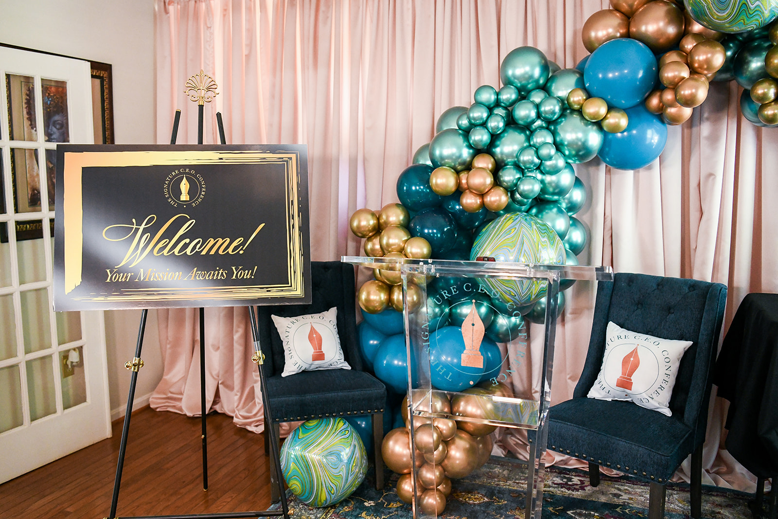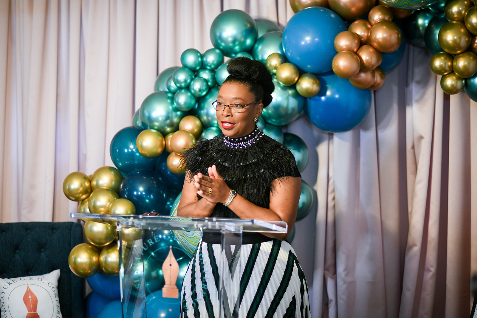 (Credits: Photography – Ana Isabel Photography; Draping/Podium – Fabrication Events; Balloons – Aniela Rose; Planning & Design – Perfect Planning Events)