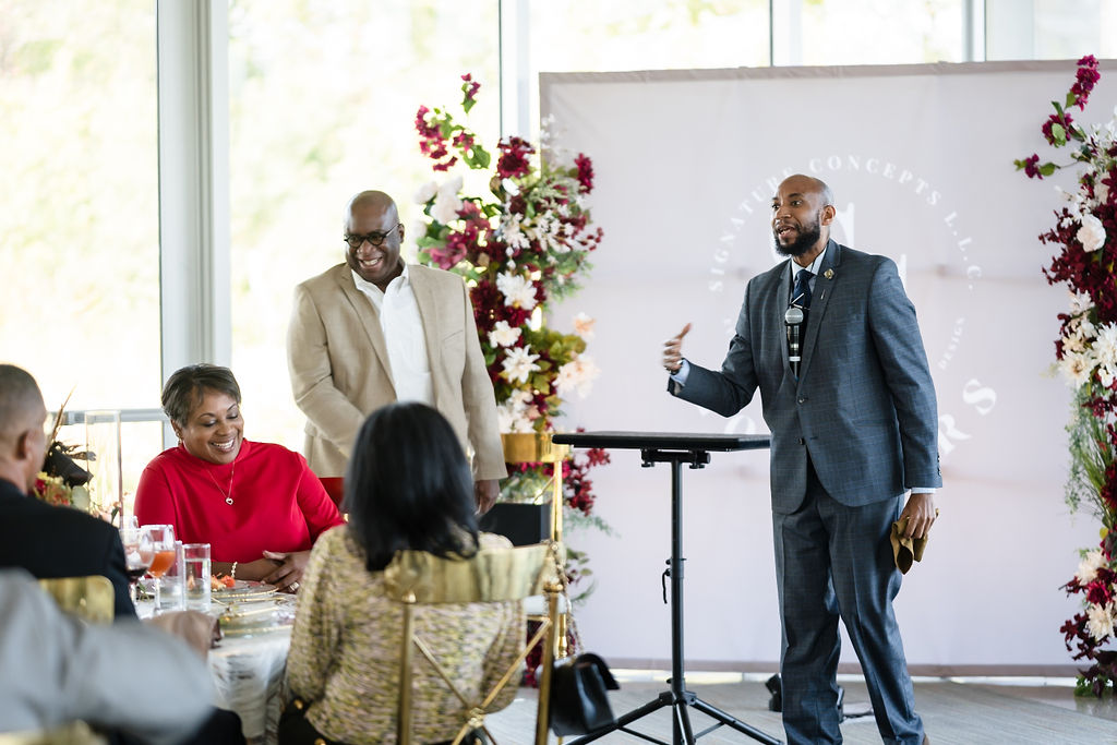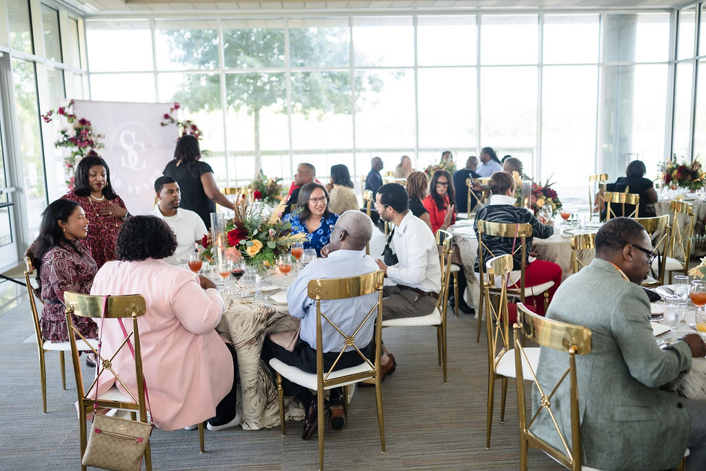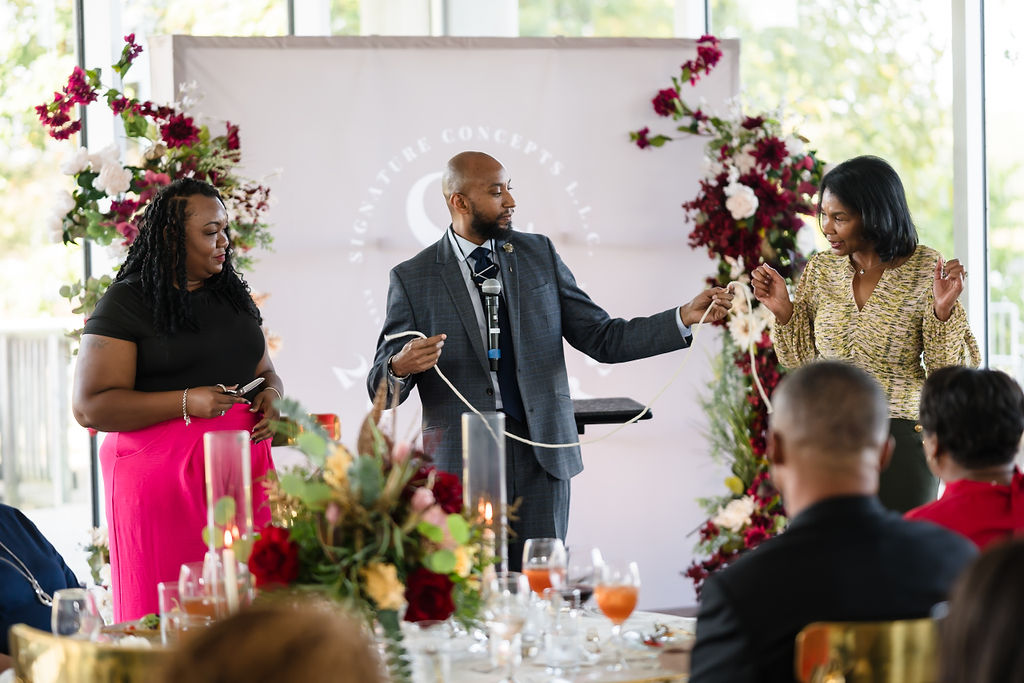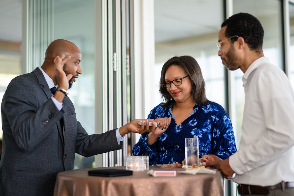 This year, I honored each guest by showcasing their event videos on a giant screen, allowing everyone to reminisce and share their experiences. We had a strolling magician to keep the guests entertained. Oops and let me talk about the space! The venue, Potomac Science Center, nestled along the edge of the Occoquan River, provided a stunning backdrop with its floor-to-ceiling windows offering breathtaking views of the water from every angle. I strategically assigned seating to encourage networking, helping guests discover mutual acquaintances and shared interests, creating priceless moments of connection.