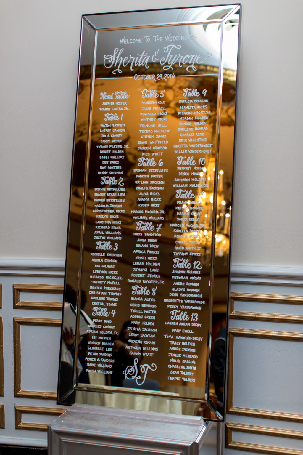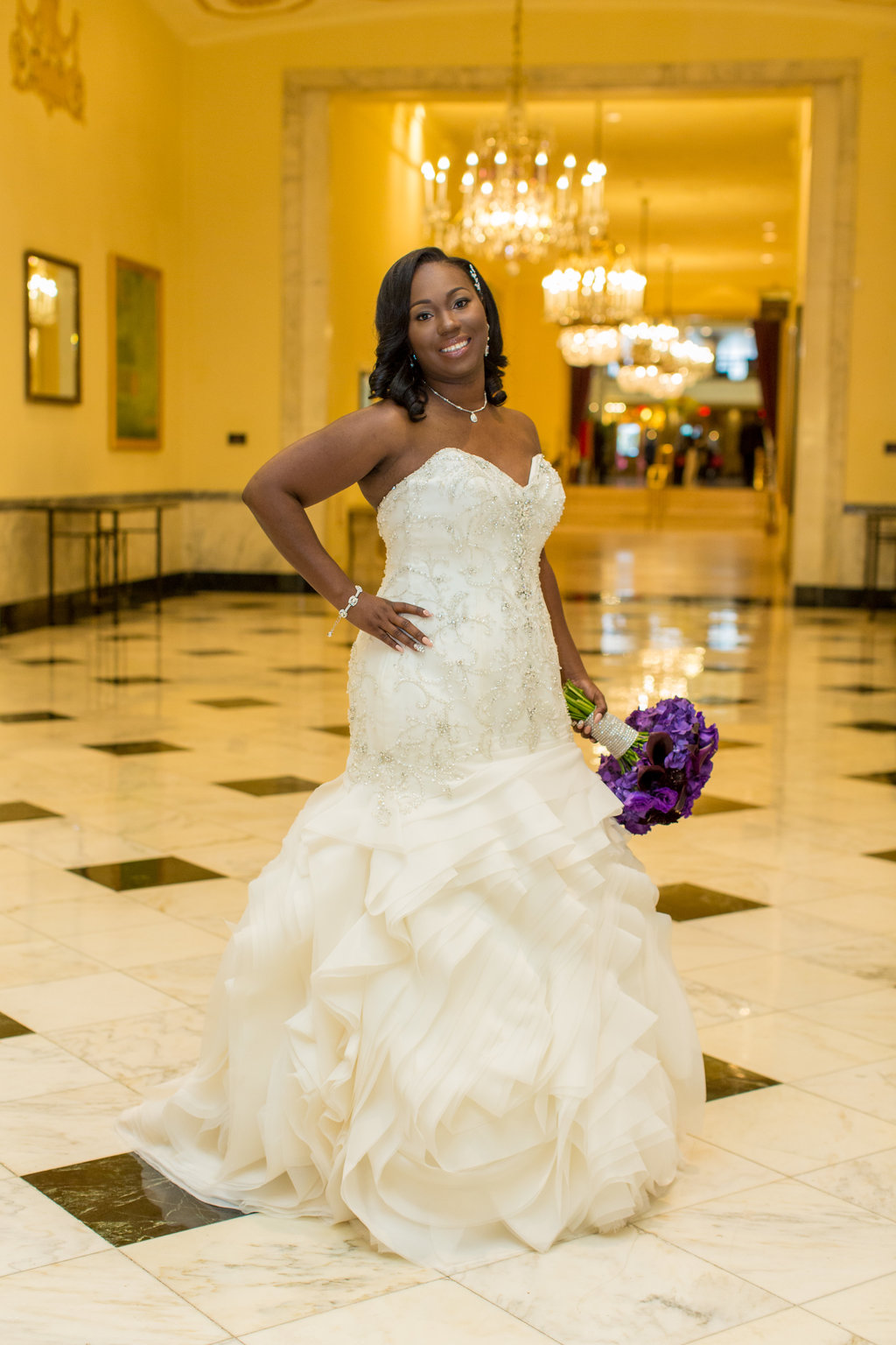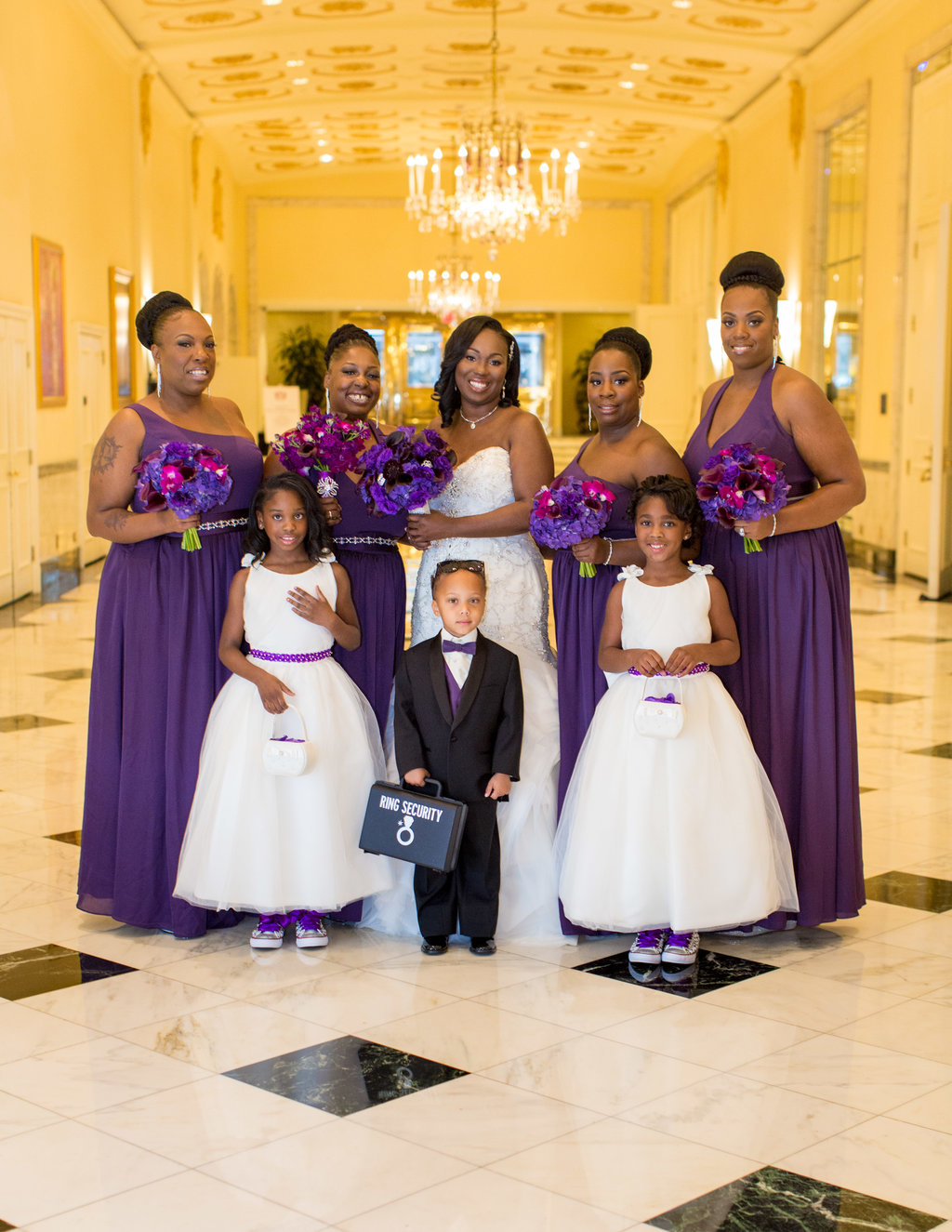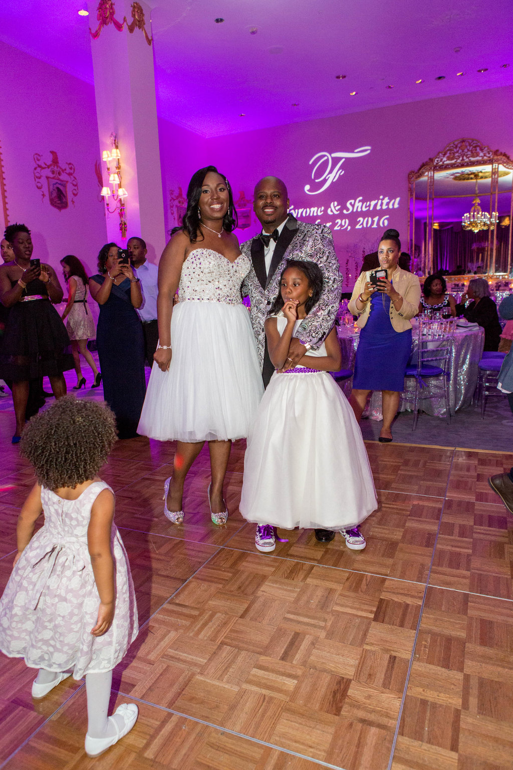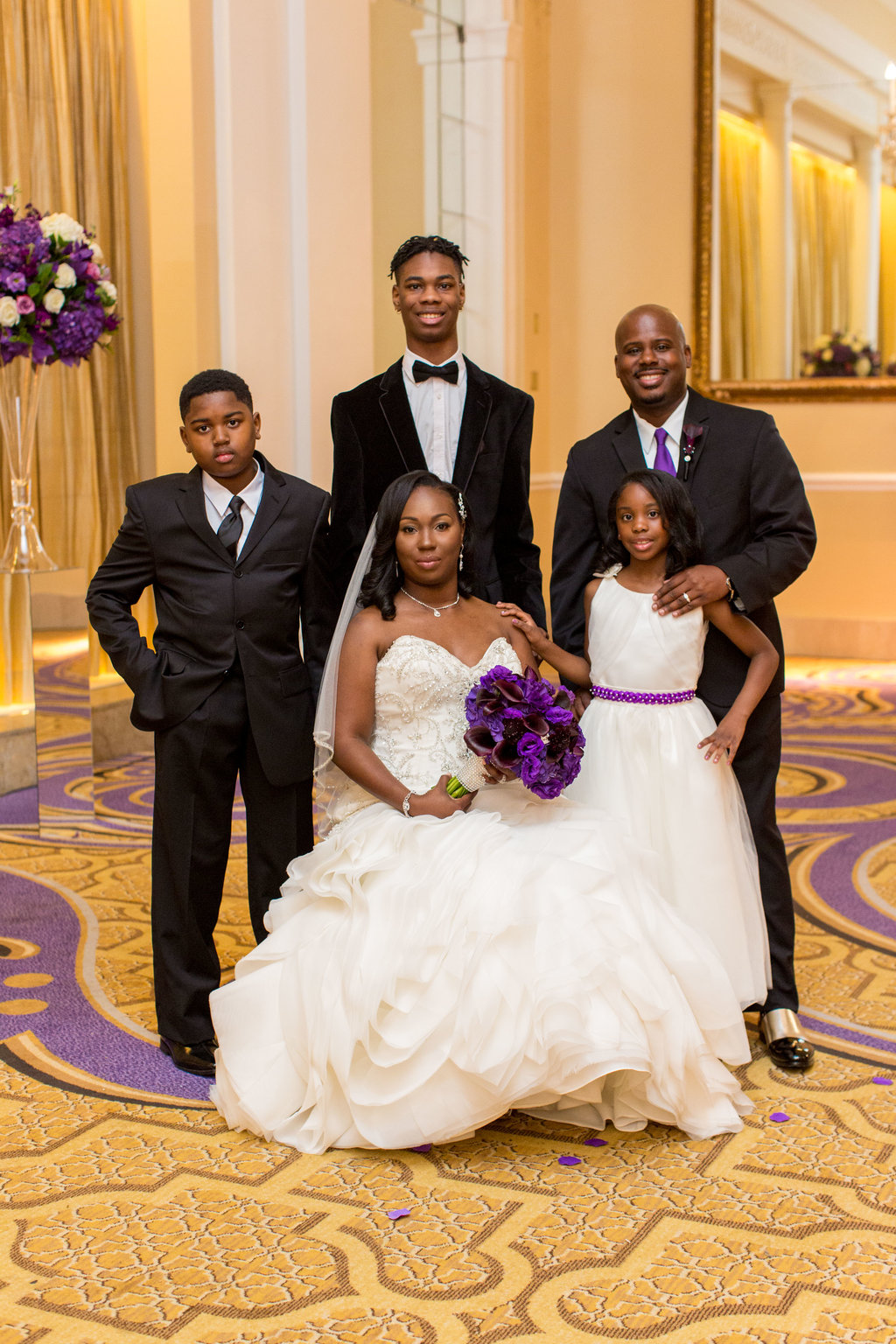 Wedding Planning & Event Design – Perfect Planning Events • Officiant – Reverend Milton Fredrick • Ceremony & Reception Venue – The Mayflower Hotel Autograph Collection • Floral Décor – Edge Floral Event Designers • Photography – Sokolov Photography • DJ Services – DJ Chris Styles (Nelson Vargas) • Ceremony Music – DJ Chris Styles (Nelson Vargas) • Wedding Cake – Edibles Incredible Desserts • Hair Stylists – Camille Austin (for Bride); Candise Johnson (for Flower girls) • Make-up Artist – Blushen by Tiffany Graham • Invitations – Fingers in Ink • Chairs, Linens – Party Rental LTD • Chargers/Base Plates – BBJ Linens • Bling Napkin Rings – Perfect Planning Events • Lighting – DJ Chris Styles (Nelson Vargas) • Mirrored Seating Chart – Just Write Studios
