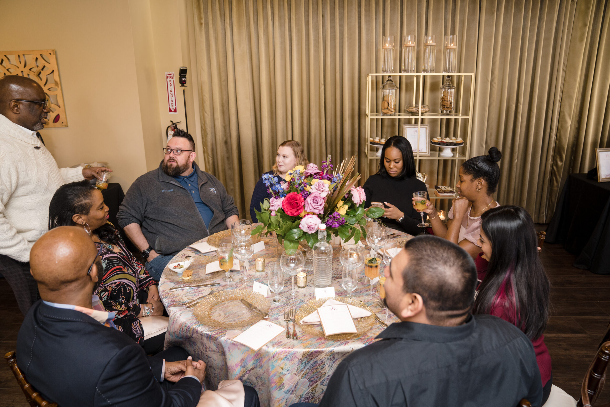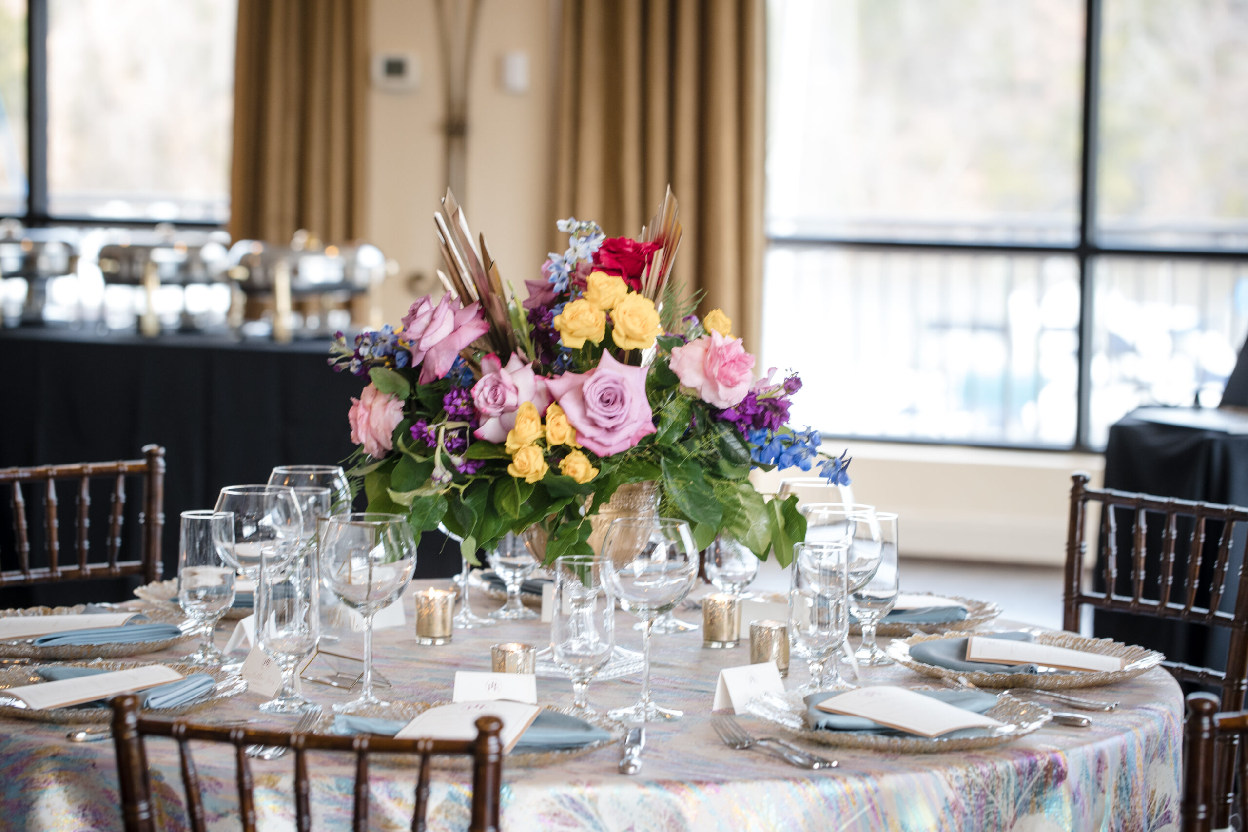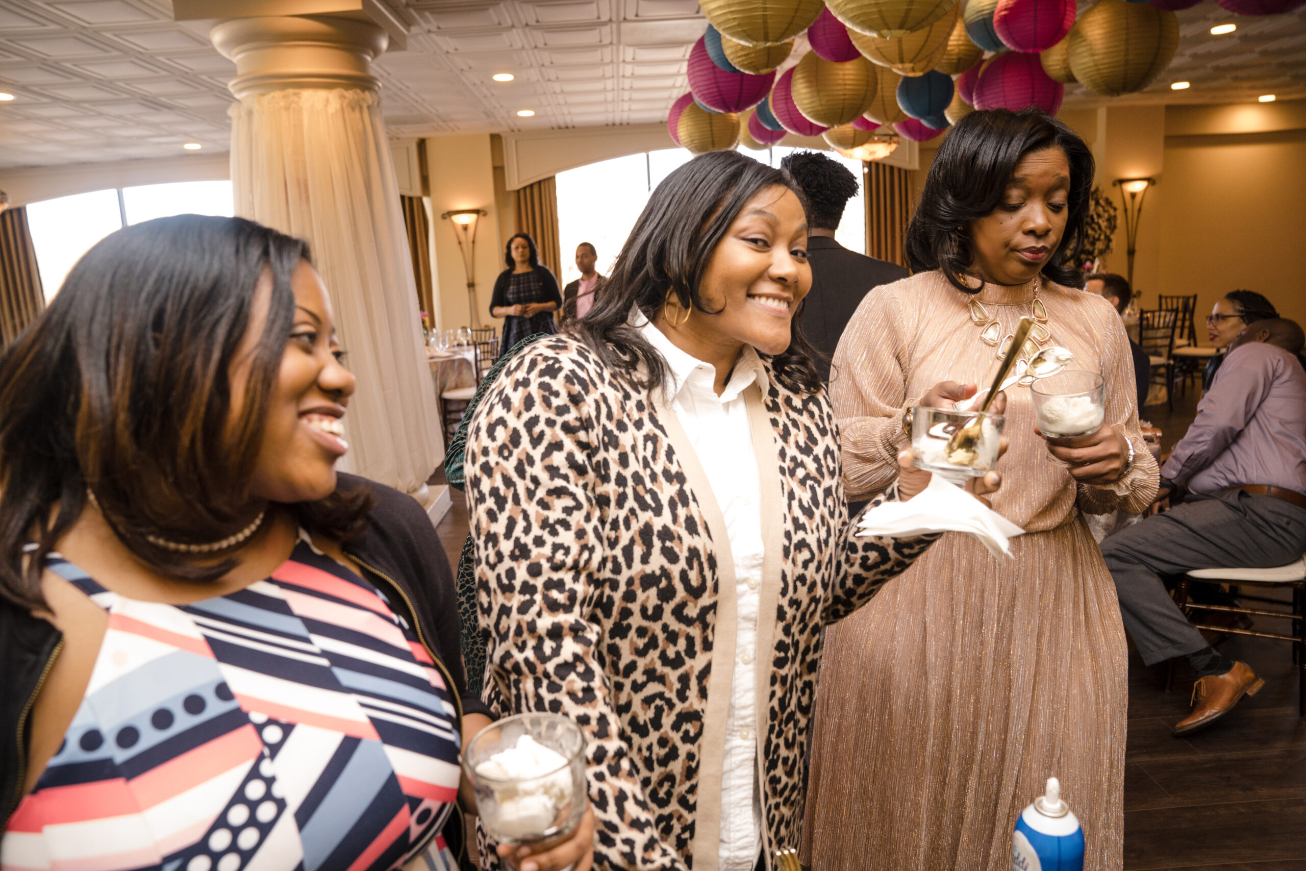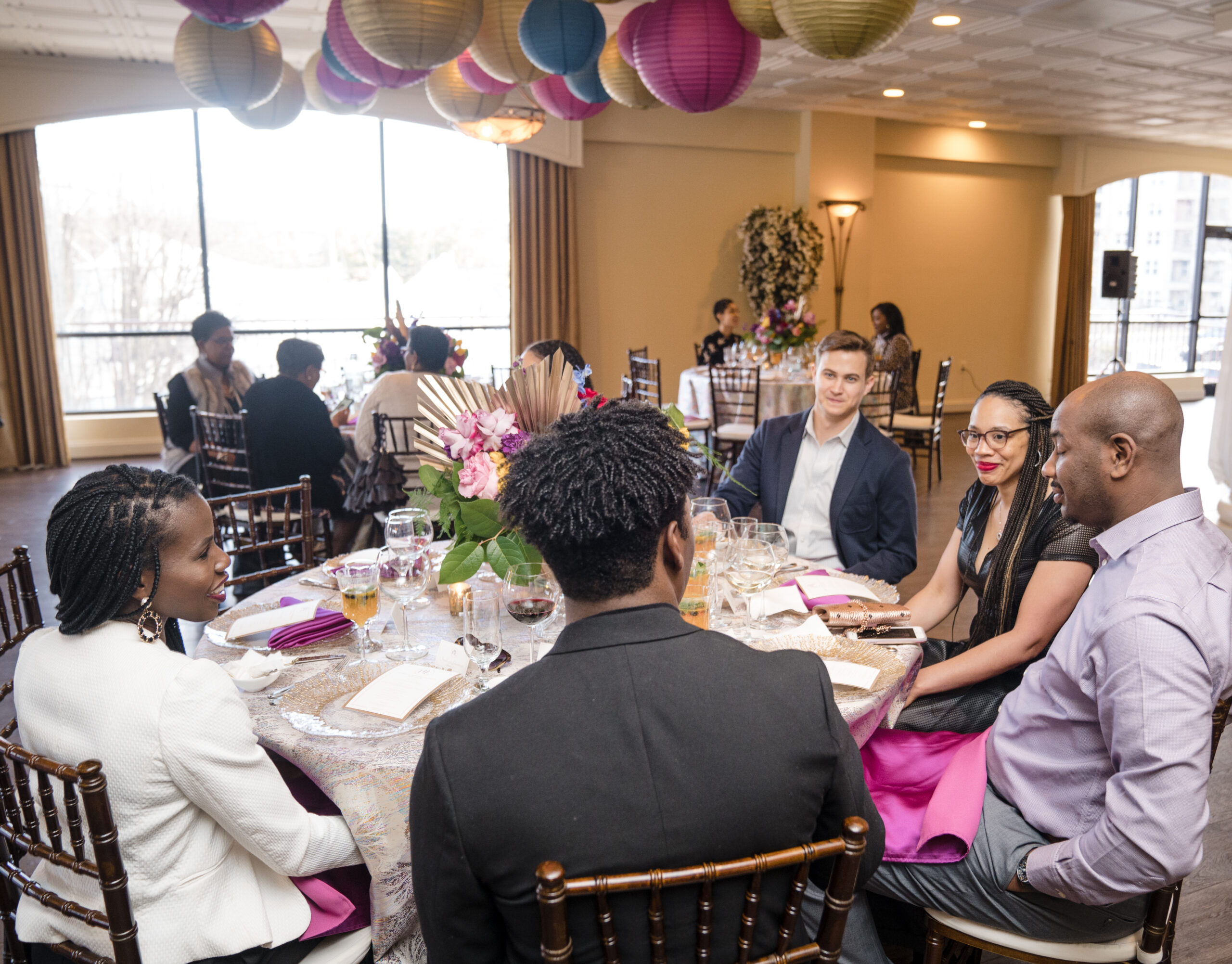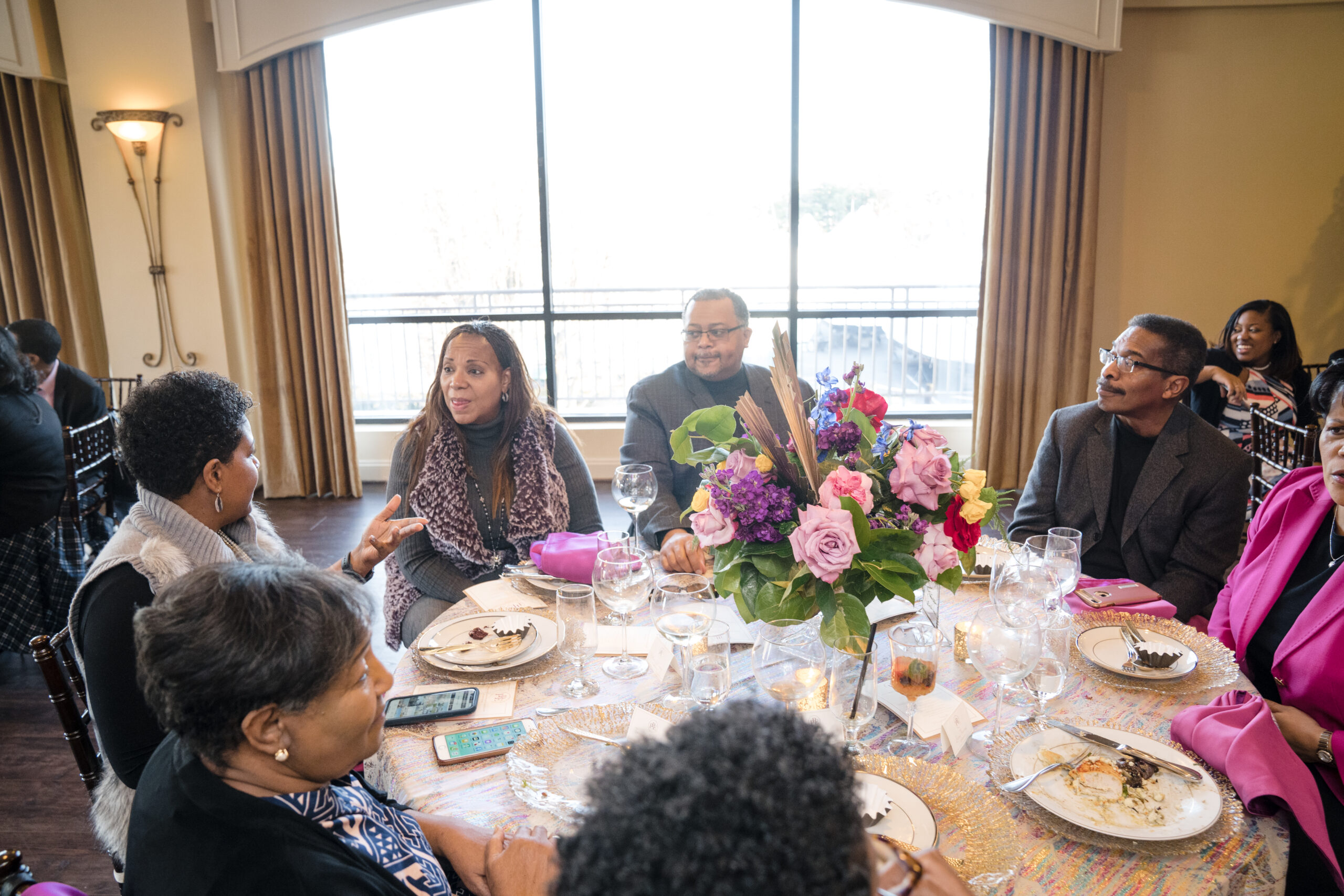 The event was held at Harbour View, a beautiful event space with waterfront views in Prince William County. The day began with everyone arriving and being greeted by a member of my team and served a delicious Mango Berry mocktail and scrumptious butlered hors d’oeuvres – Mediterranean orzo, mini chicken and waffles, and parmesan ravioli. Guests had the opportunity to mix and mingle as they indulged in the bites provided by Kindle Cuisine. I strategically seated everyone who I thought would have common interest and boy did they! Surprise outcomes from their social engagement ranged from realizing they lived in the same neighborhood, going to school with siblings, friends of friends, and more!