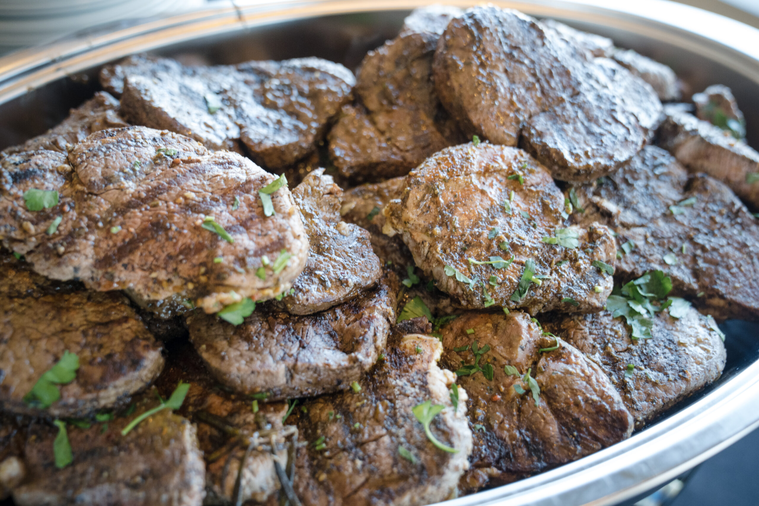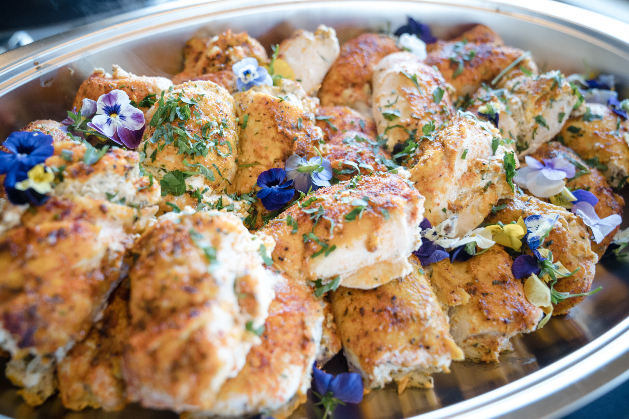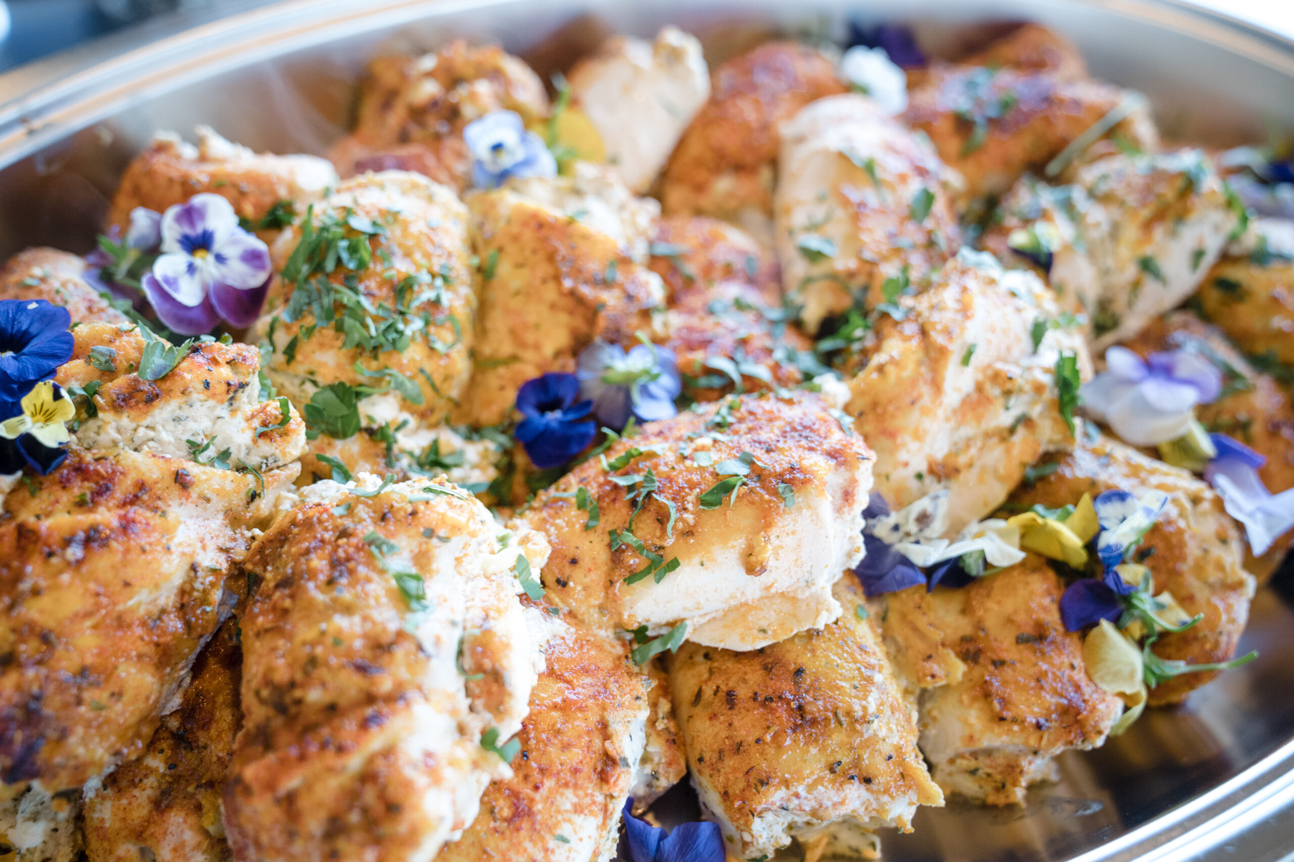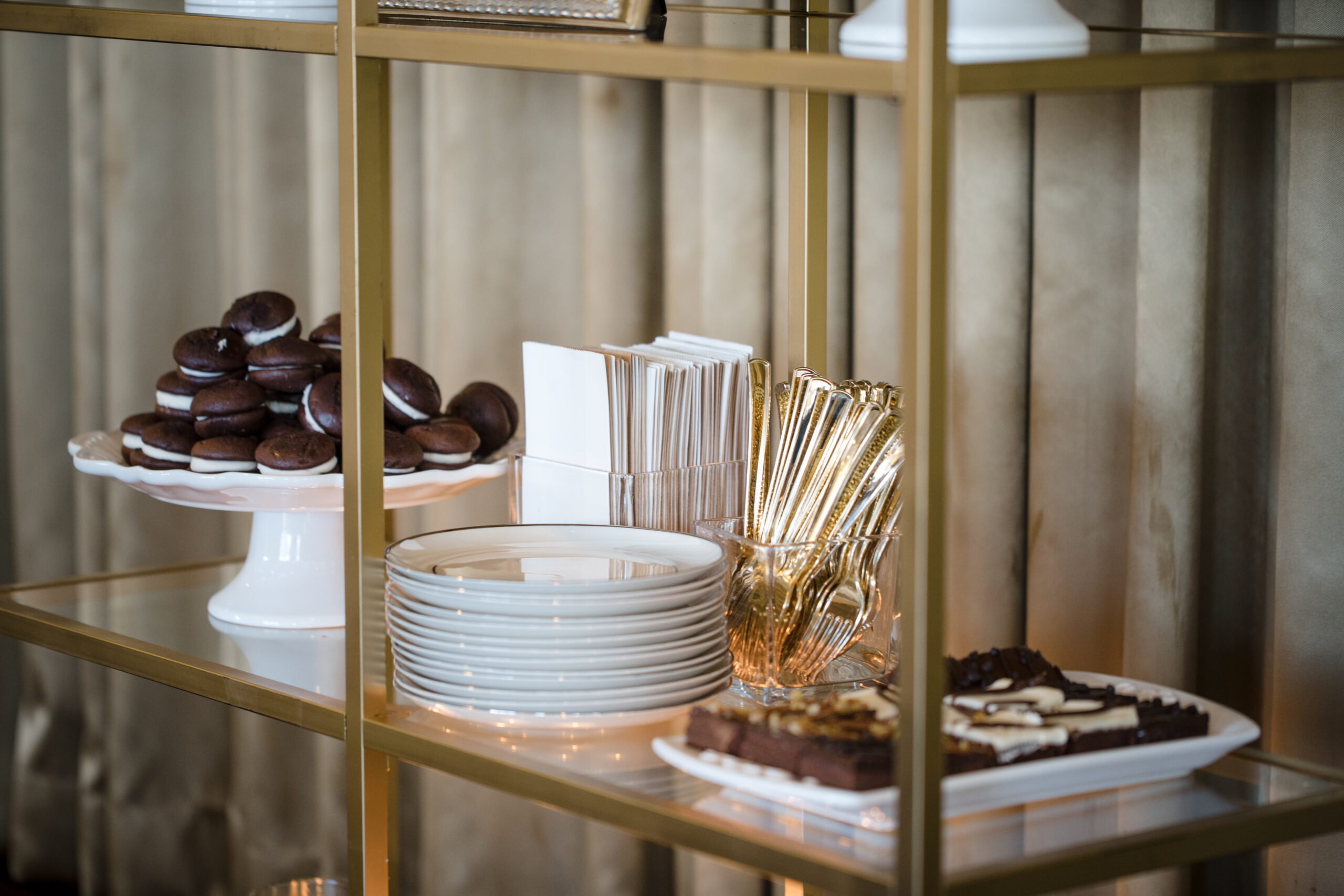 I opened the evening with a few remarks about each of my clients and the purpose of our evening. Chef Renee Weaks came before the guests to describe the meal that she prepared for us – poached pear and goat cheese salad with candied pecans, herbed-cheese stuffed chicken breast, rosemary garlic butter steak, stuffed bell peppers, smoked-grilled vegetables, lemon pesto basmati rice, and honey butter rolls. For dessert we had a variety of self-serve desserts – a variety of bundt cakes from Nothing Bundt Cakes, variety of chocolate brownies, whoopie pies; and to top it off an ice cream station. Oh, and we had a wine bar! Guests departed with a gift of bubbly as a token of my appreciation for their attendance.