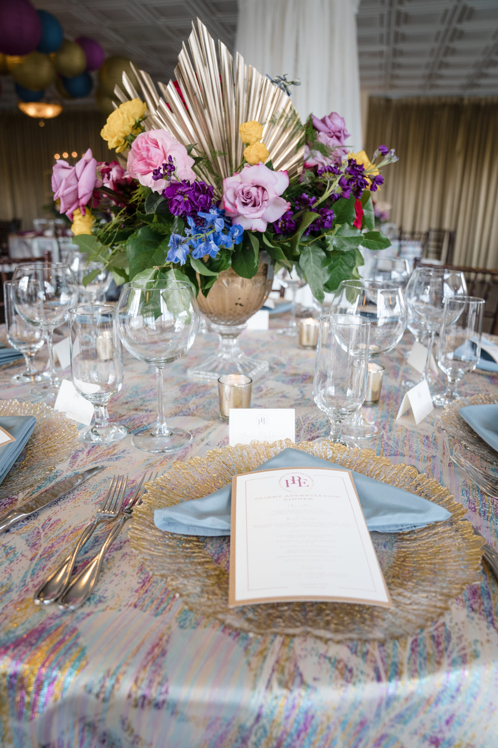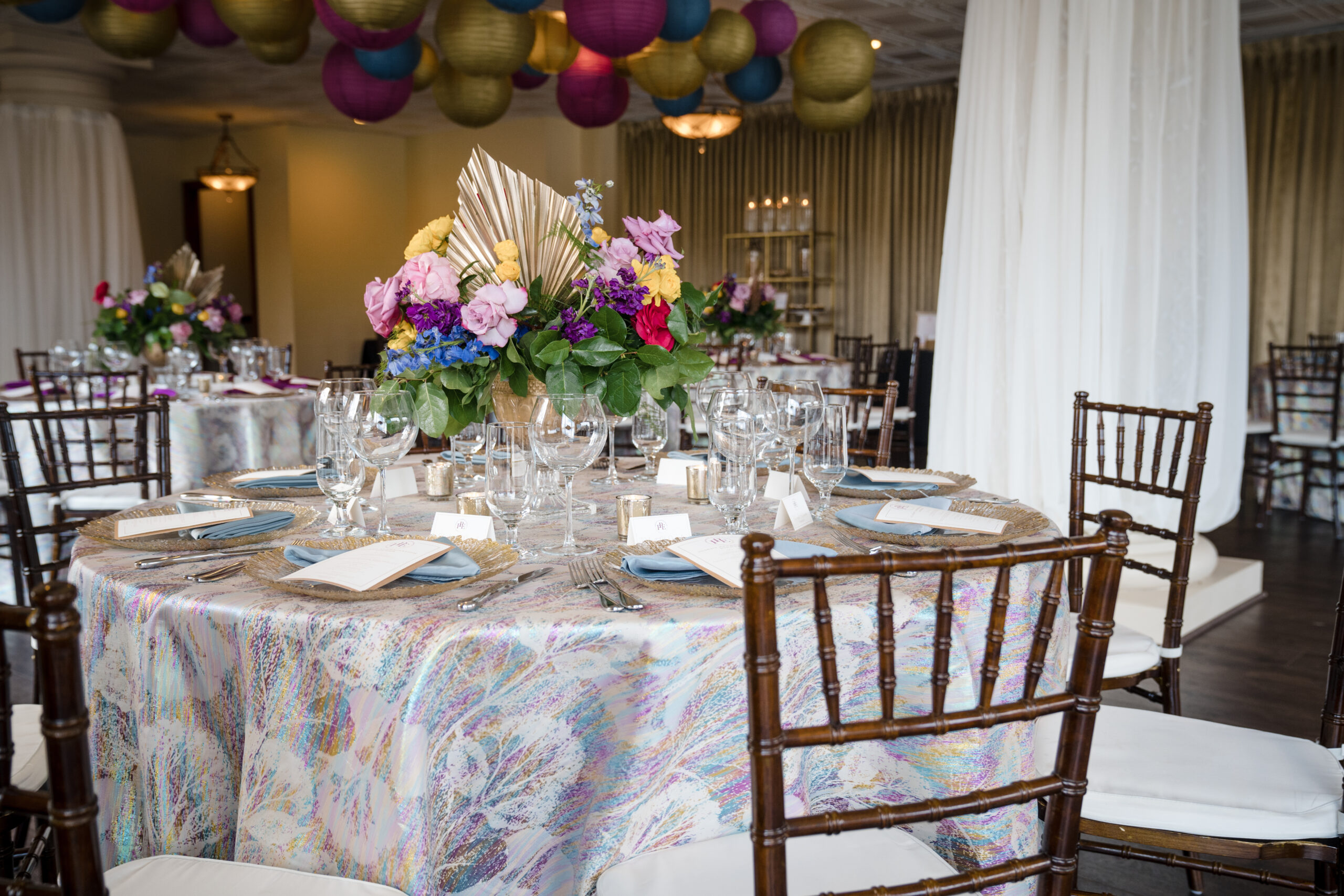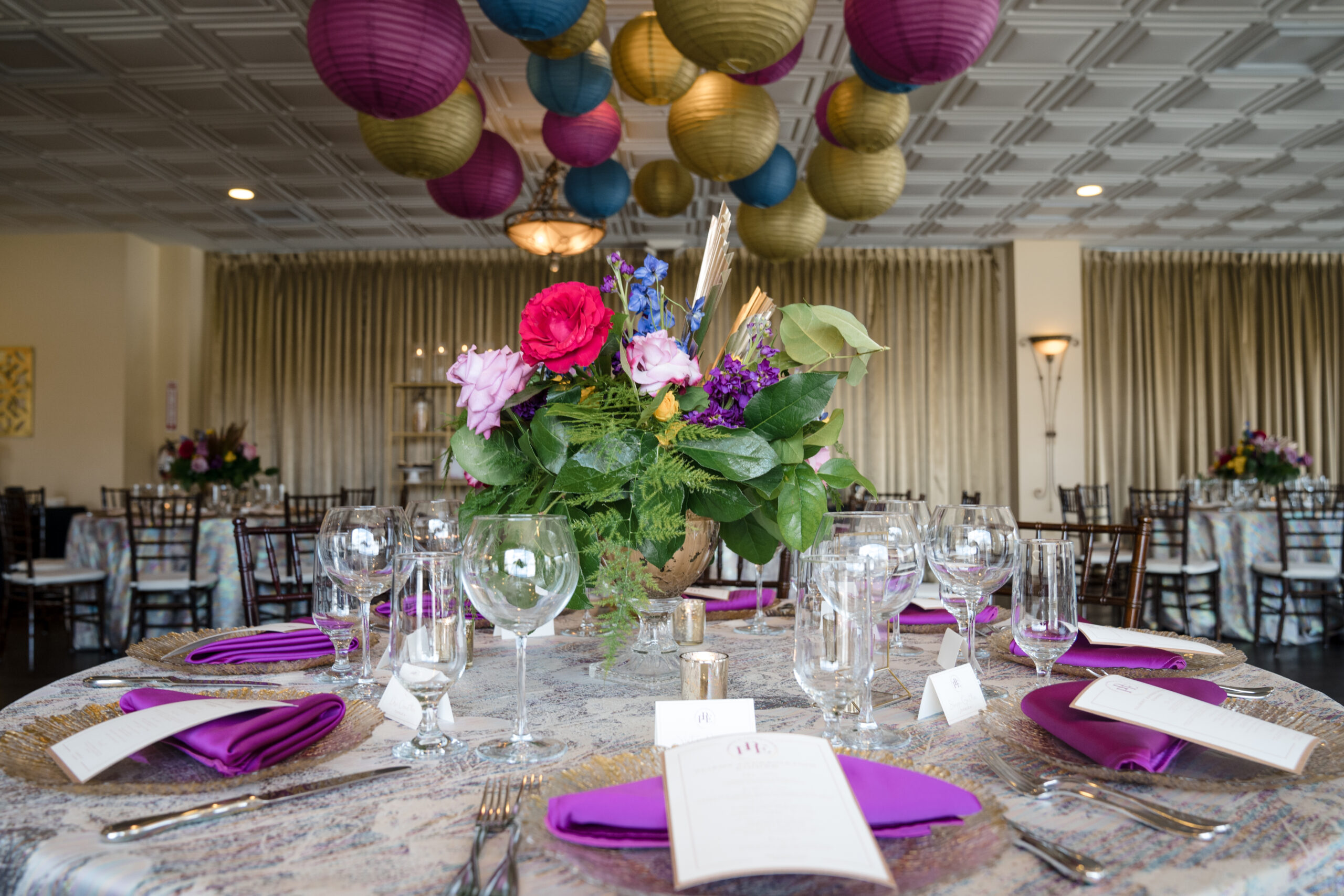 Planning & Design (us) – Perfect Planning Events • Venue – Harbour View • Florals & Chargers – BCG Events • Photography – Chip Dizard Studios • Catering – Kindle Cuisine • Linens – DC Rental • Ceiling Lantern Décor – Perfect Planning Events • Menus, Escort Cards, Table Numbers – Perfect Planning Events