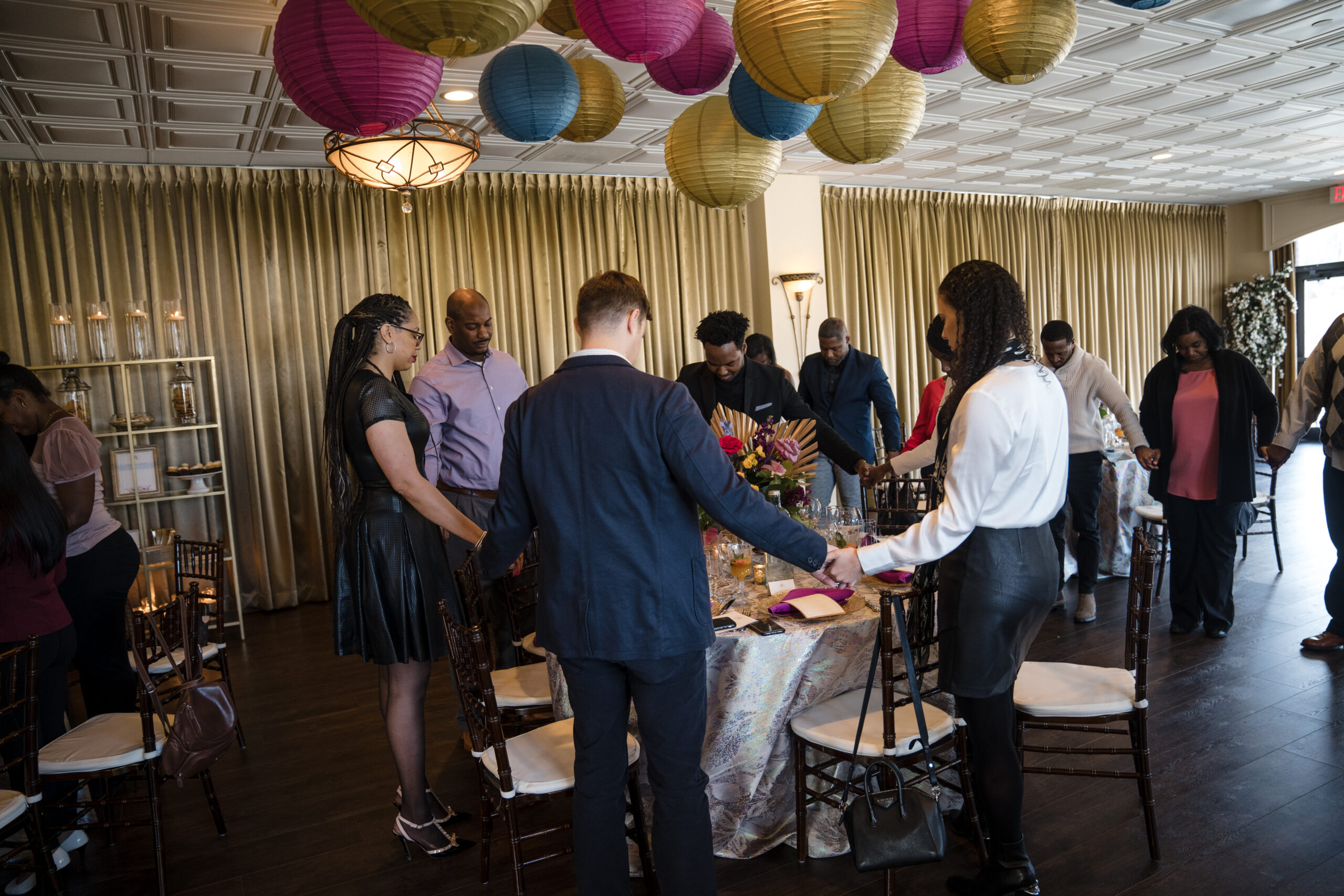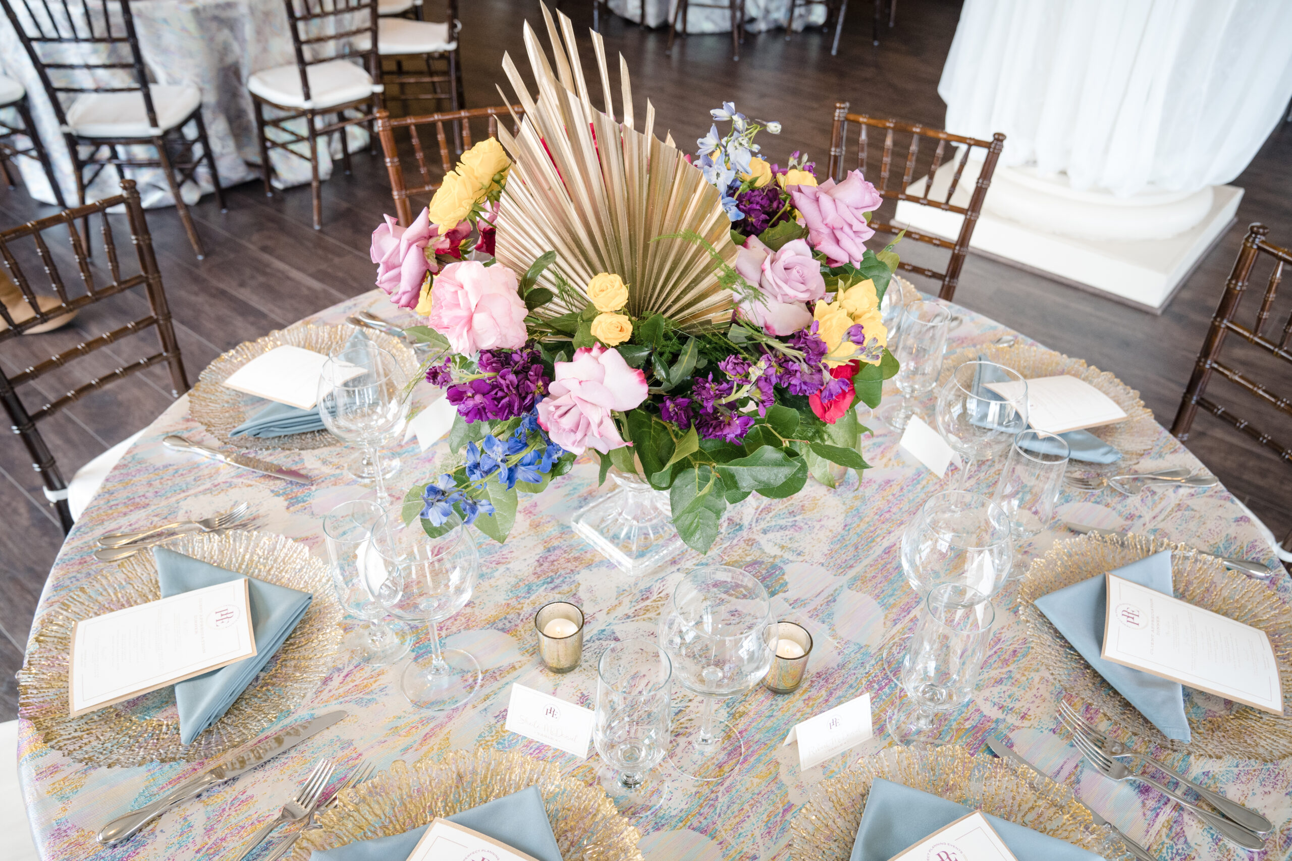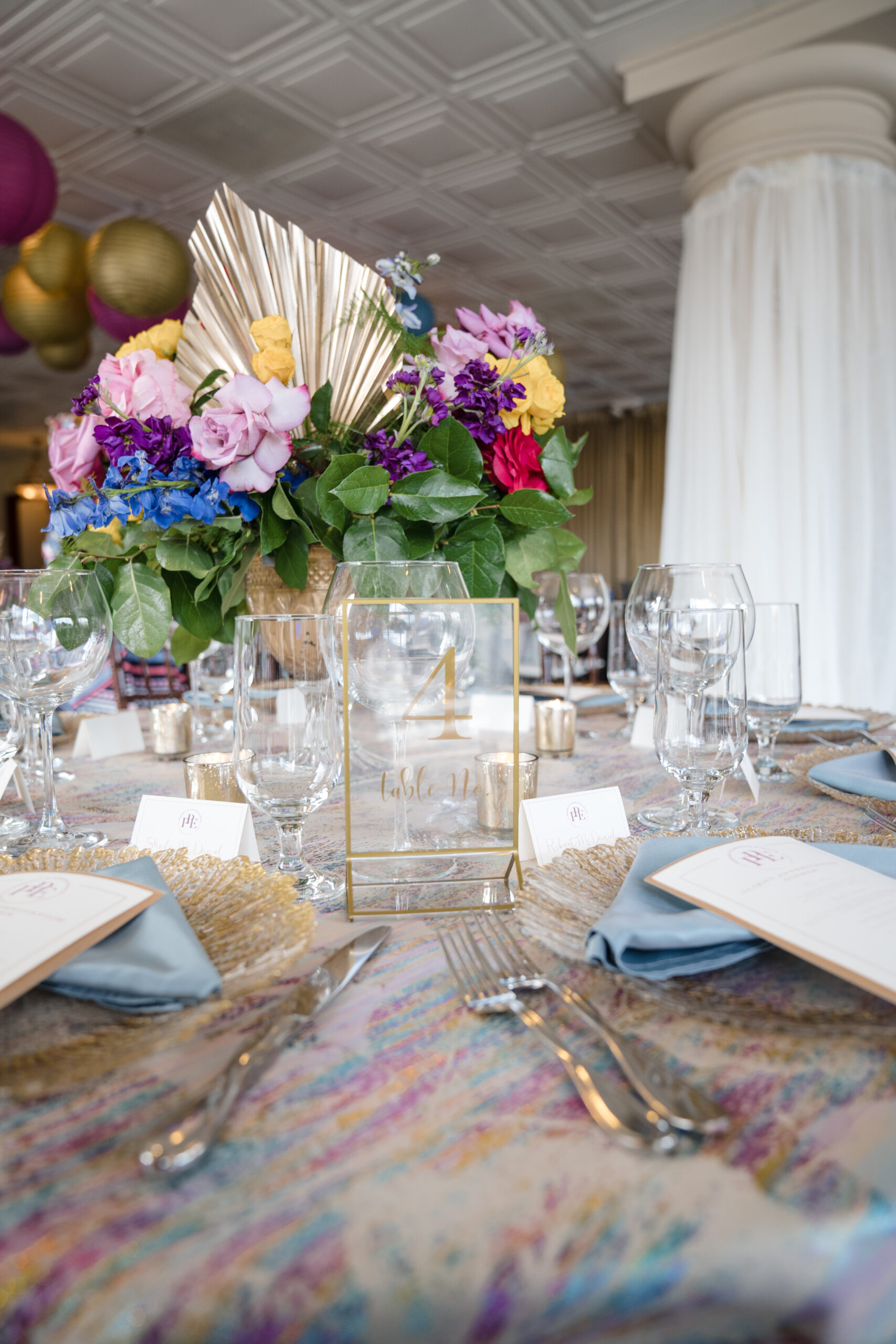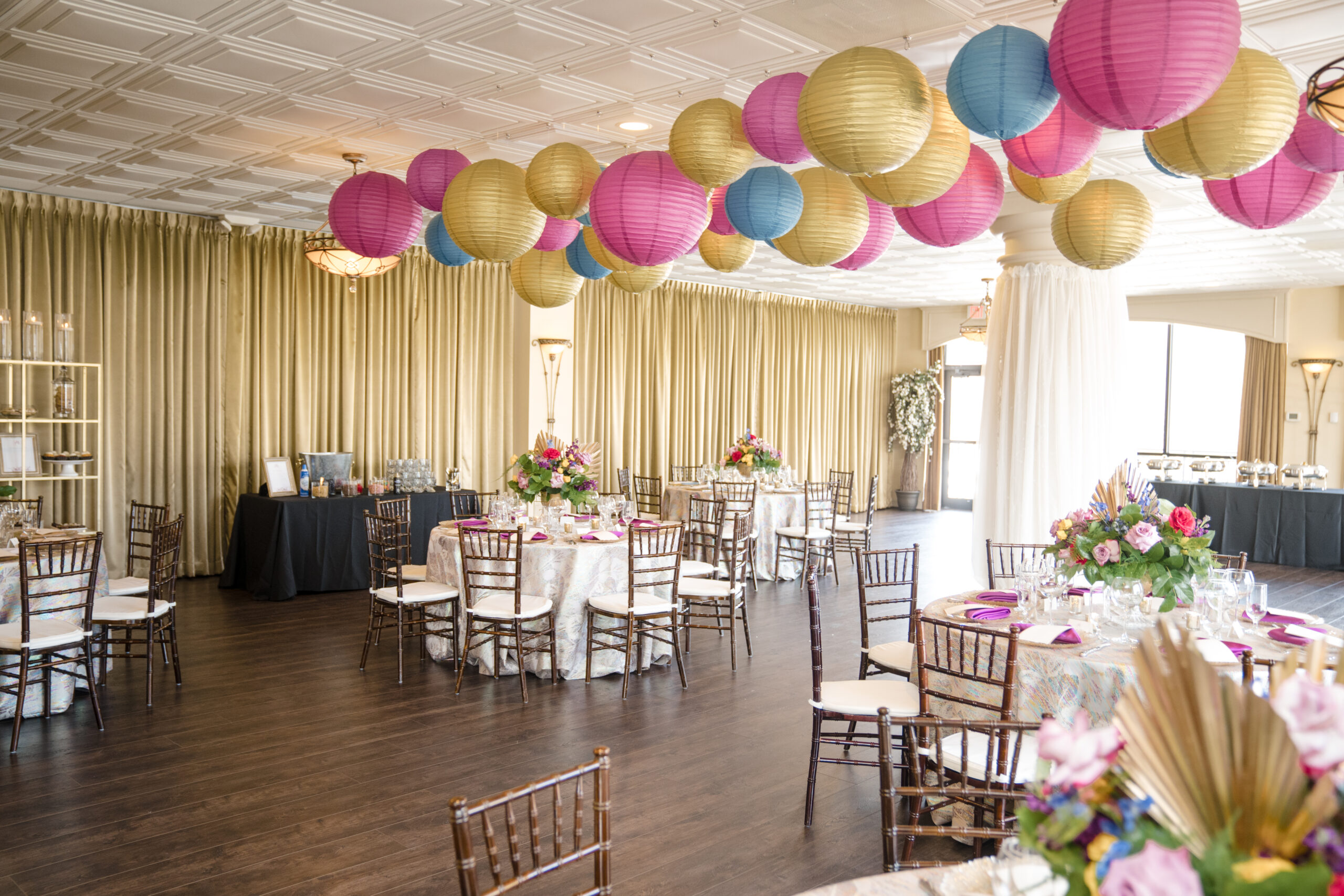 Planning & Design (us) – Perfect Planning Events • Venue – Harbour View • Florals & Chargers – BCG Events • Photography – Chip Dizard Studios • Catering – Kindle Cuisine • Linens – DC Rental • Ceiling Lantern Décor – Perfect Planning Events • Menus, Escort Cards, Table Numbers – Perfect Planning Events